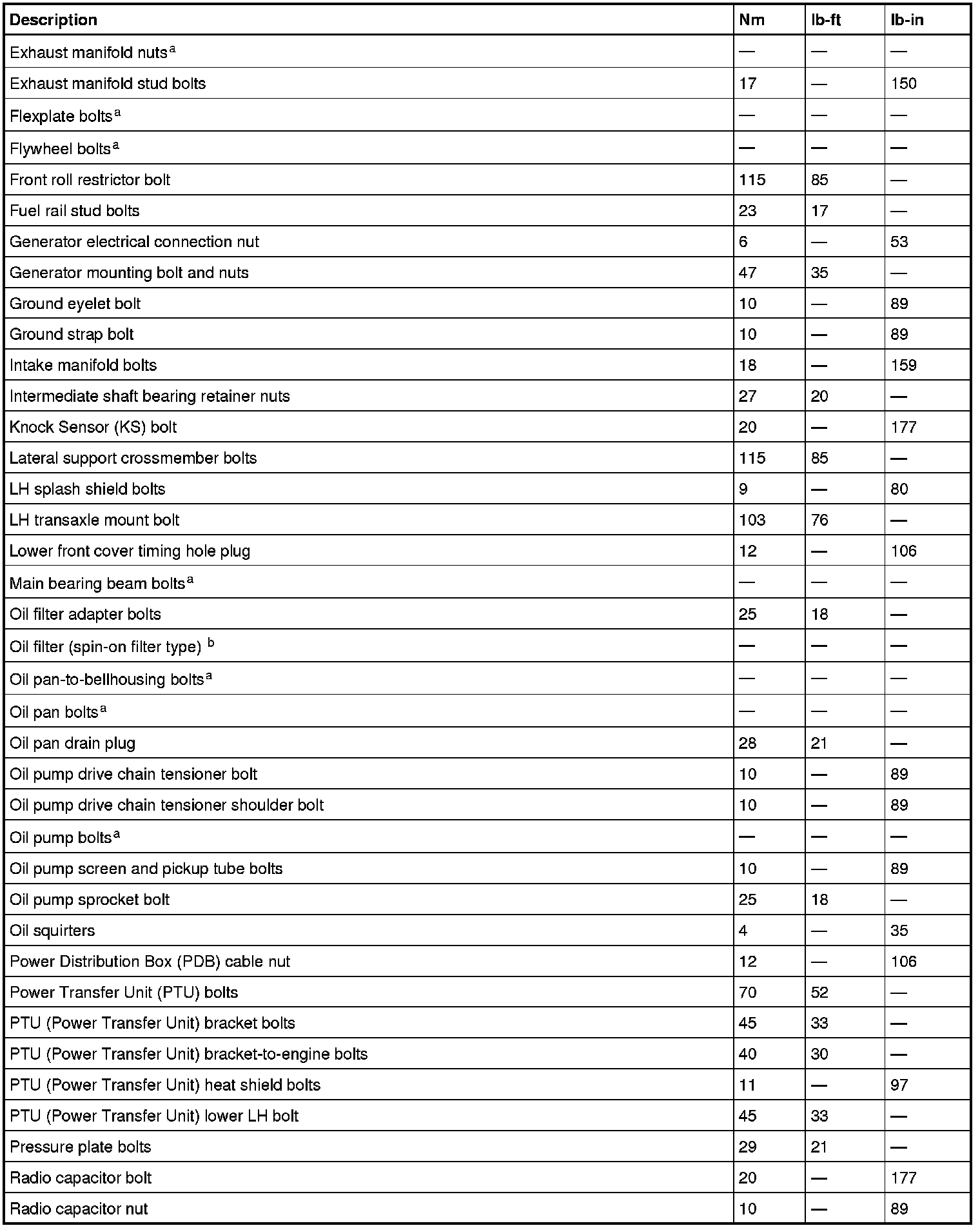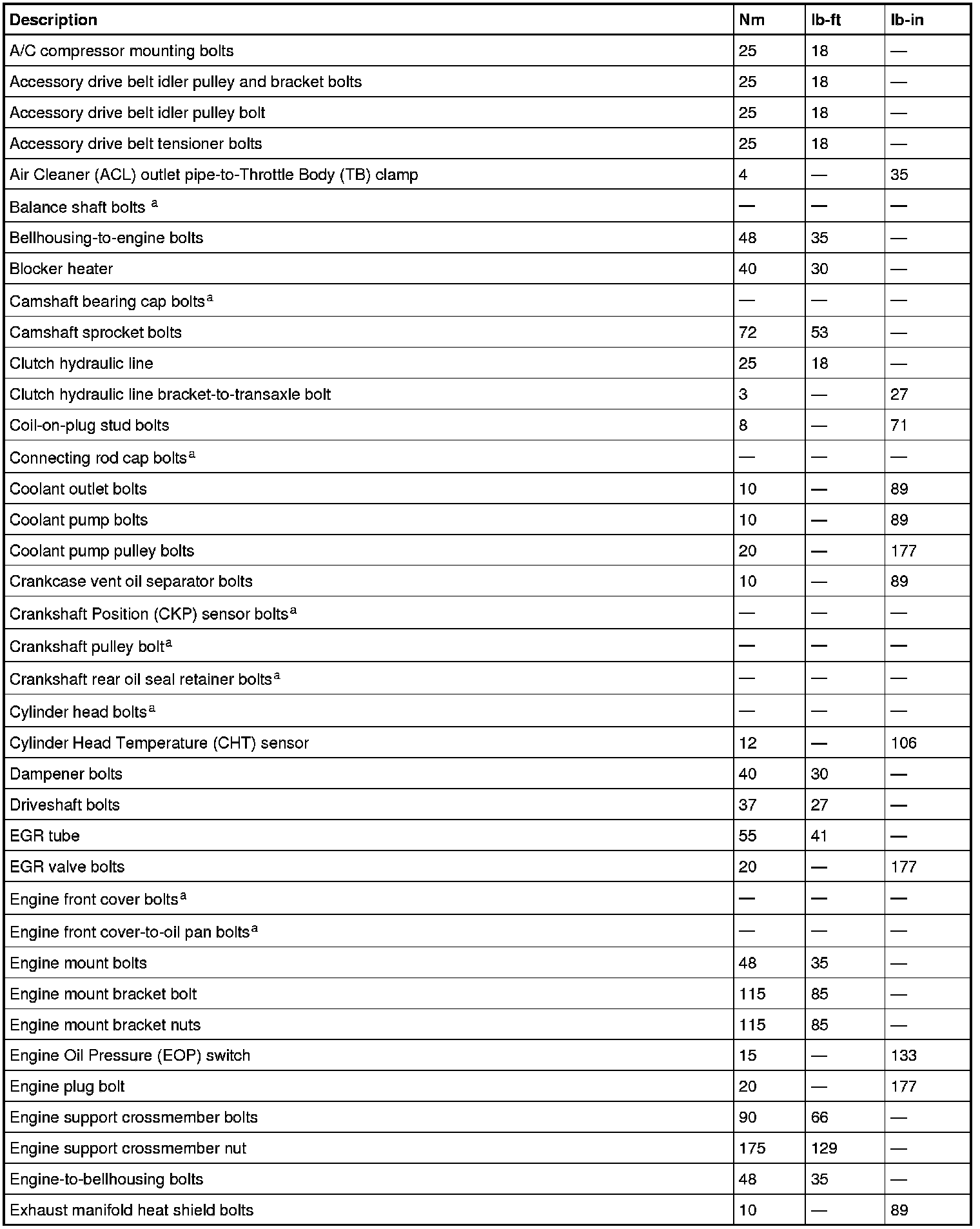 Torque Specifications
