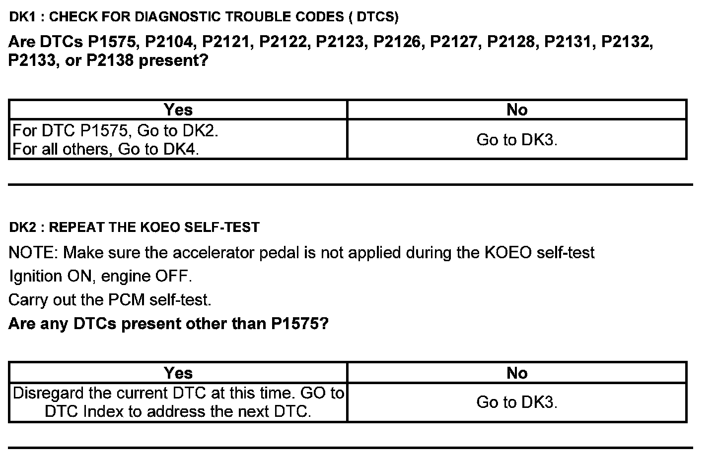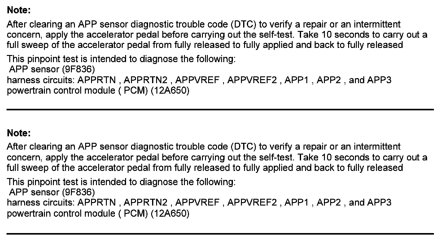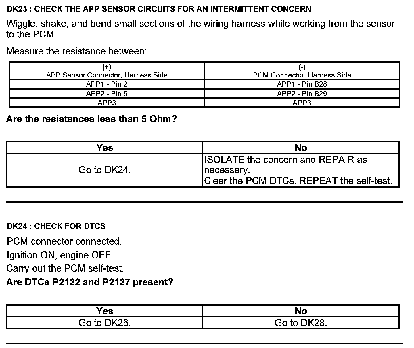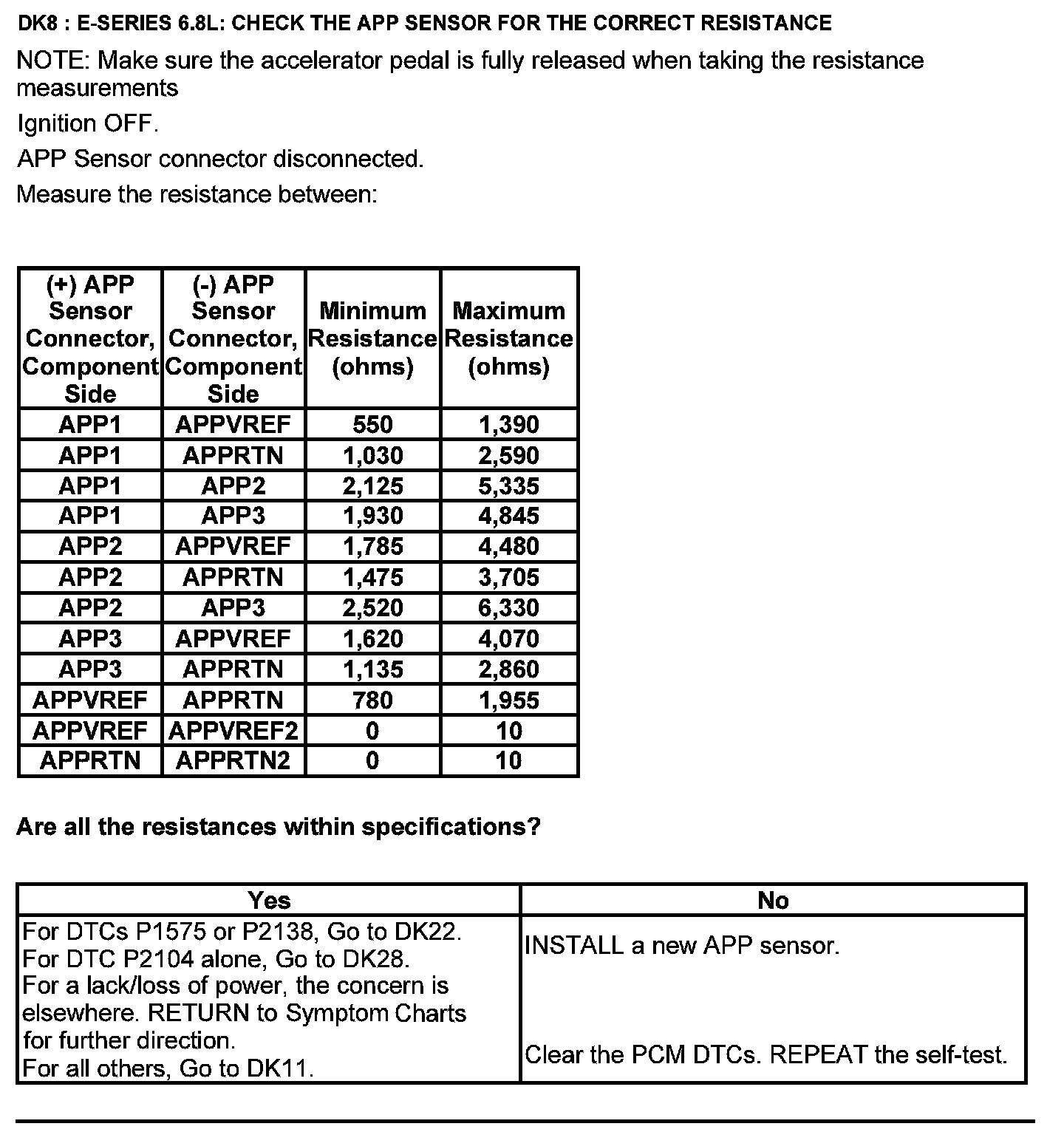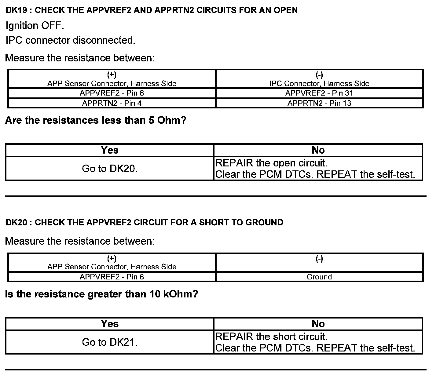 Home >> Ford >> 2012 >> Escape 4WD V6-3.0L >> Repair and Diagnosis >> Powertrain Management >> Computers and Control Systems >> Testing and Inspection >> Pinpoint Tests >> Test DK: Accelerator Pedal Position (APP) Sensor