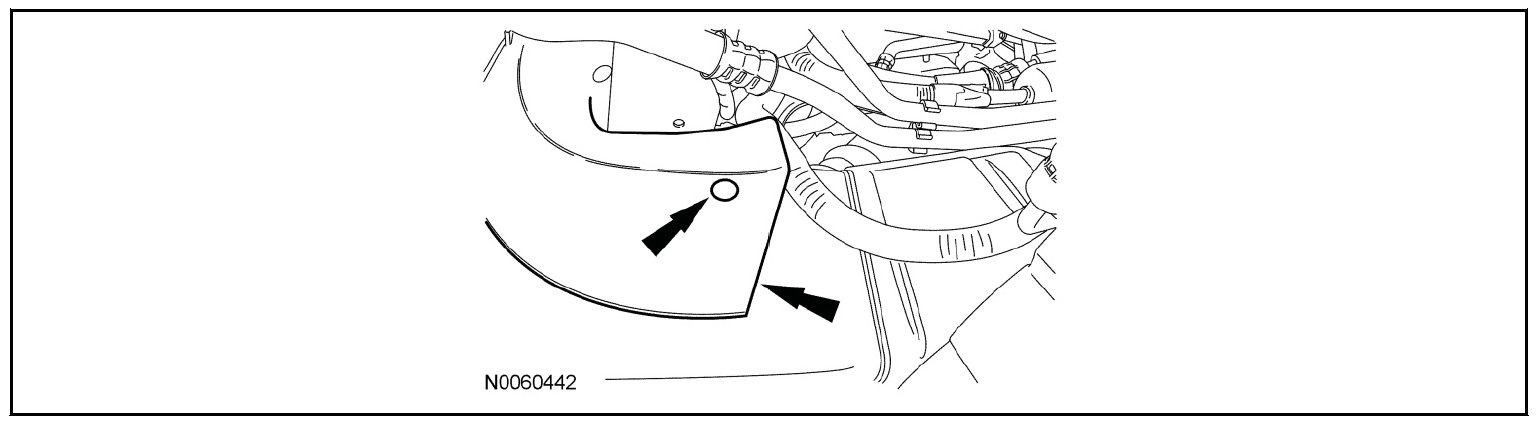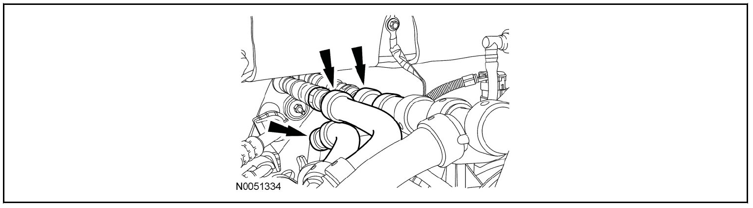 - Unclip the RH hose from the retainers on the side of the degas bottle/air cleaner module.