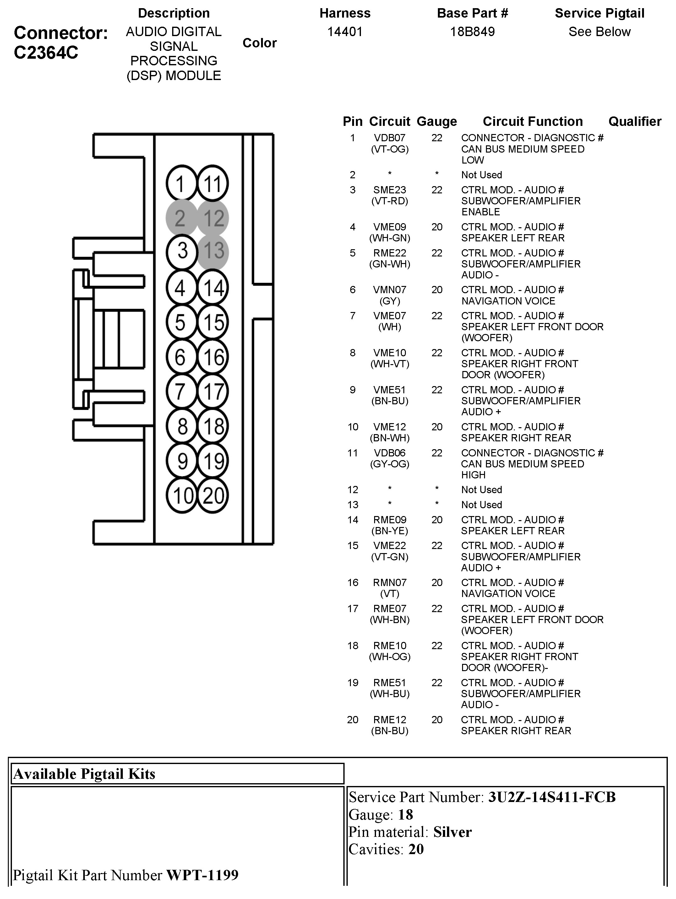 Home >> Ford >> 2012 >> Expedition 2WD V8-5.4L >> Repair and Diagnosis >> Diagrams >> Connector Views >> Communications Control Module >> C2364C Audio Digital Signal Processing (DSP) Module