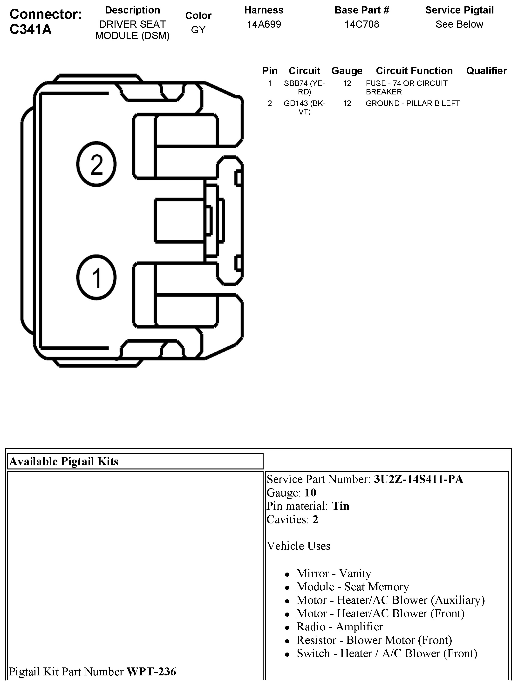 C341A Driver Seat Module (DSM)