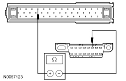 - Measure the resistance between the ABS module C135-16, circuit GD120 (BK/GN), harness side and ground.