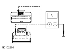 - Measure the voltage between the 4X4 control module, harness side and ground as follows: