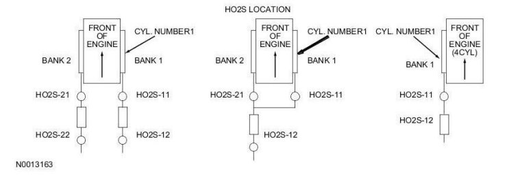 Heated Oxygen Sensor-Front (HO2S-Front) Connector - The pin numbering for the connector is in reference to the connector lock tab. Not all connector key combinations are shown.