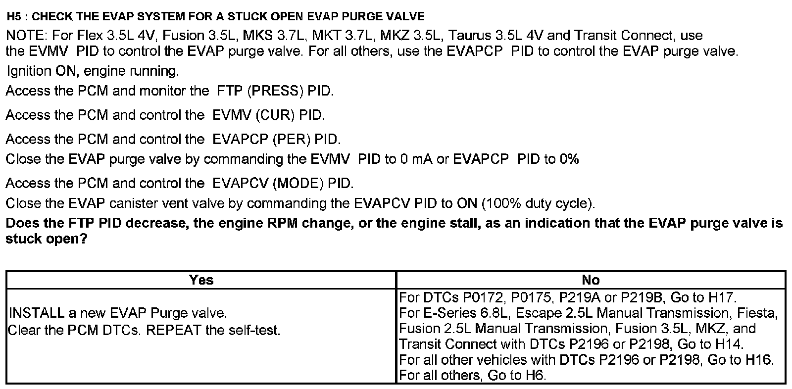 Home >> Ford >> 2012 >> Expedition 2WD V8-5.4L >> Repair and Diagnosis >> Powertrain Management >> Computers and Control Systems >> Testing and Inspection >> Pinpoint Tests >> Test H: Fuel Control