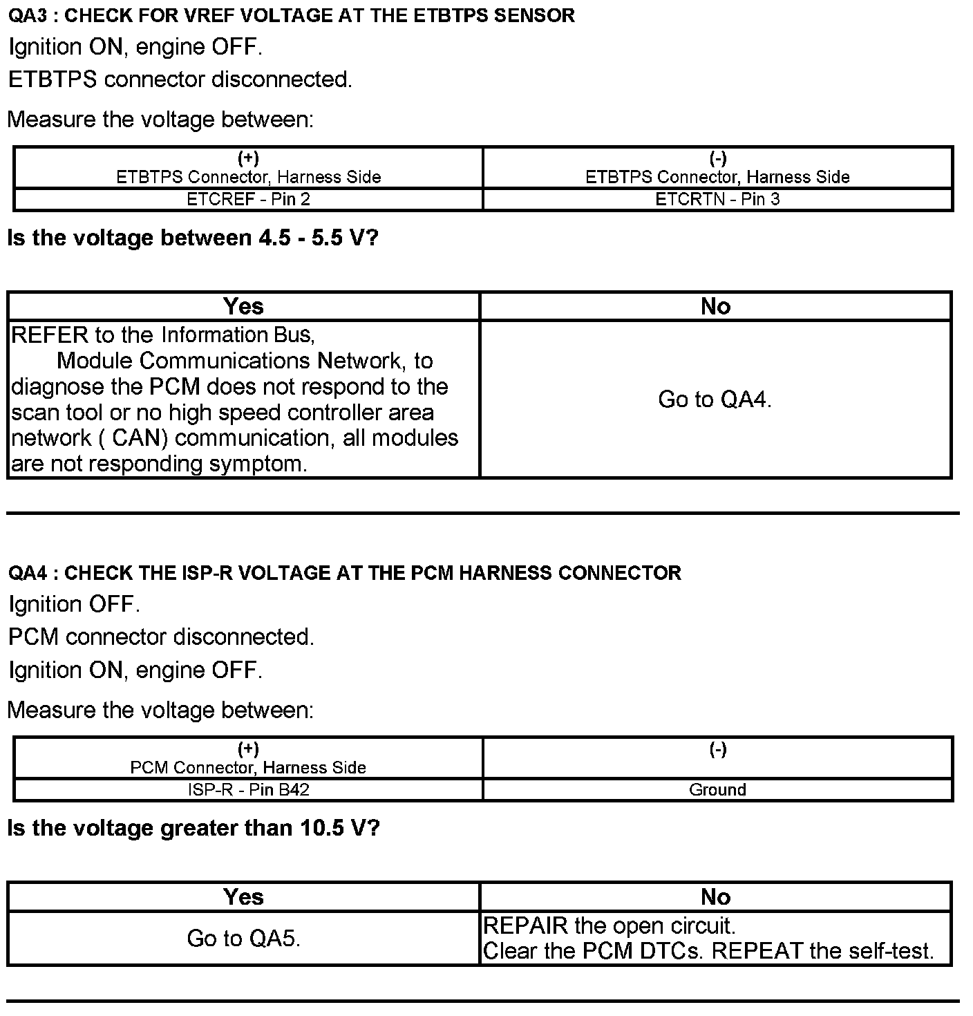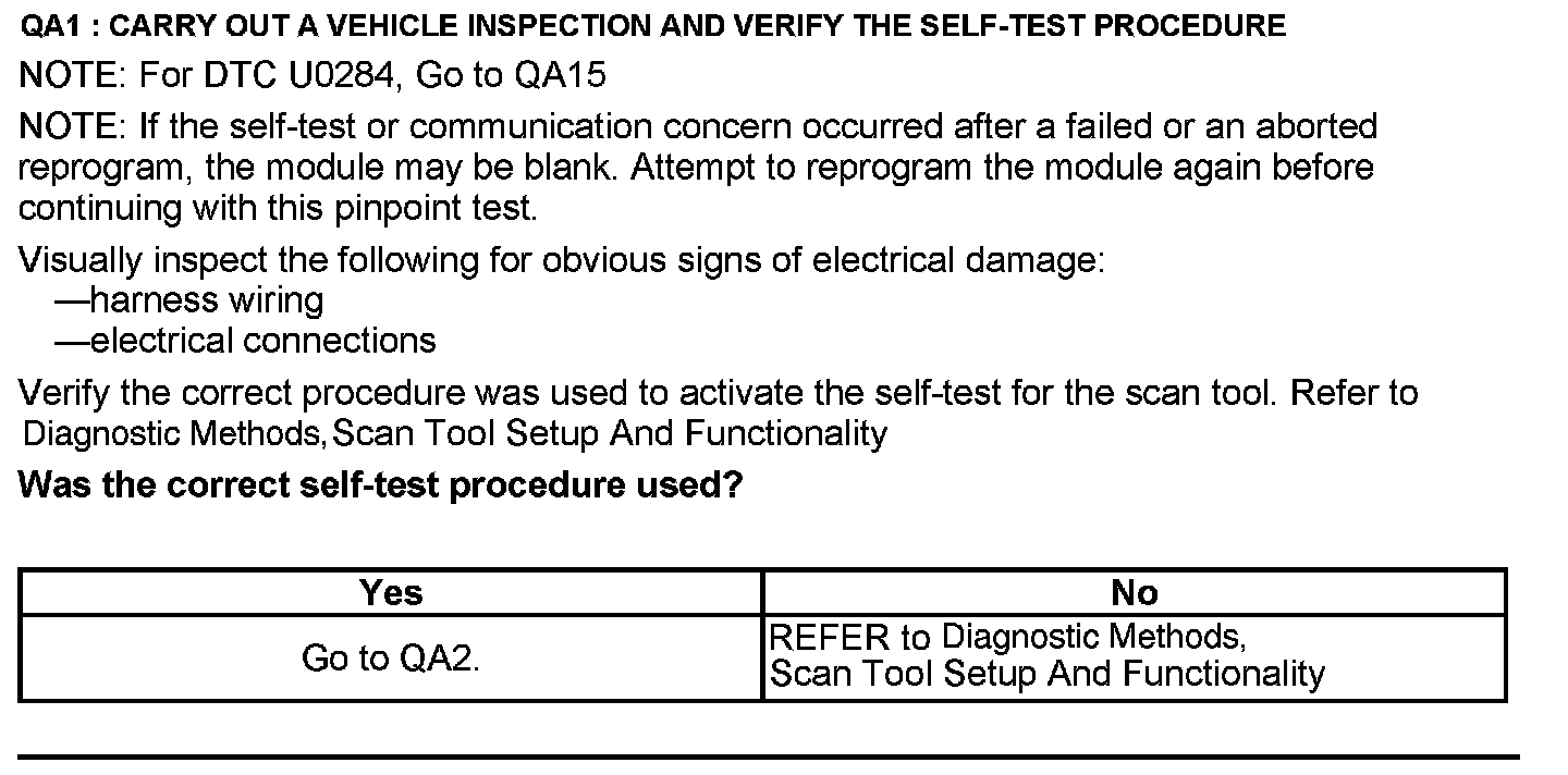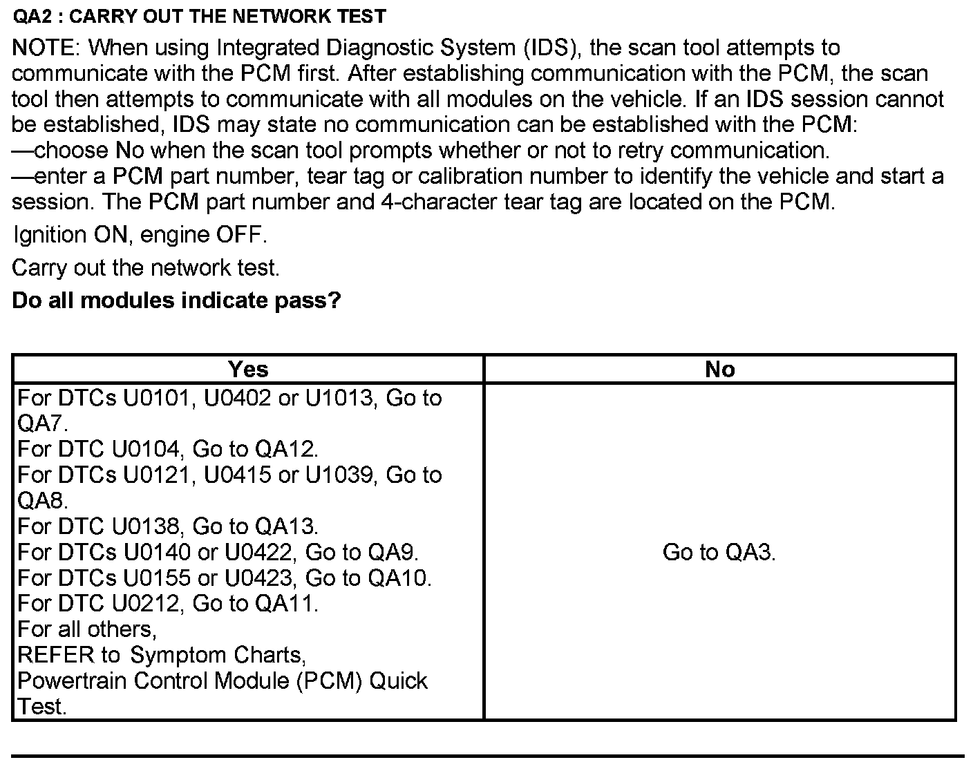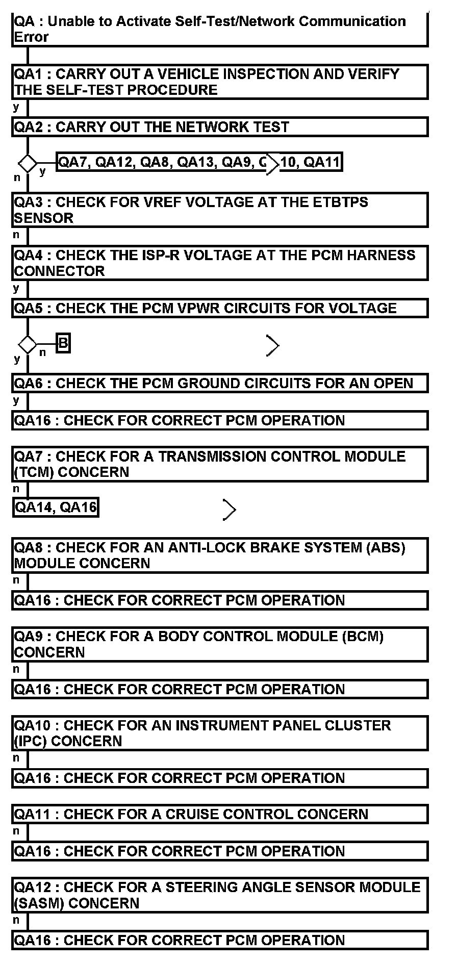 Home >> Ford >> 2012 >> Expedition 2WD V8-5.4L >> Repair and Diagnosis >> Powertrain Management >> Computers and Control Systems >> Testing and Inspection >> Pinpoint Tests >> Test QA: Unable to Activate Self-Test/Network Communication Error