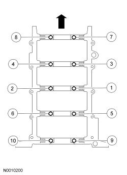 Install the 10 side bolts and tighten them in 2 stages, in the sequence shown.