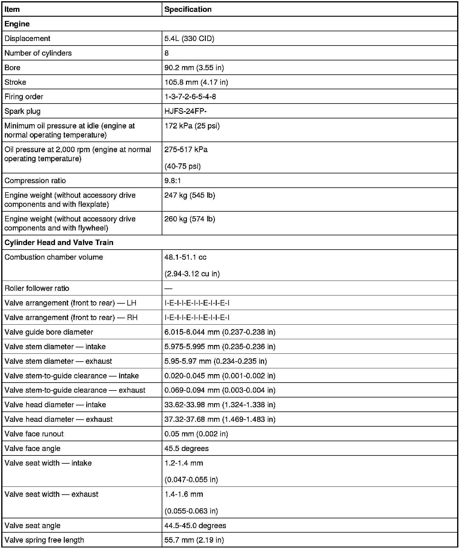 Home >> Ford >> 2012 >> Expedition 2WD V8-5.4L >> Repair and Diagnosis >> Specifications >> Mechanical Specifications >> Engine >> System Specifications >> Engine Specifications