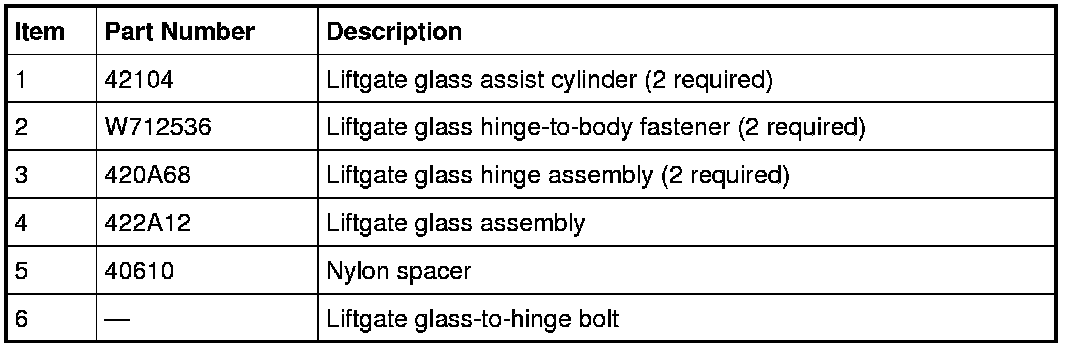 - Apply threadlock to the liftgate glass-to-hinge fasteners during installation.