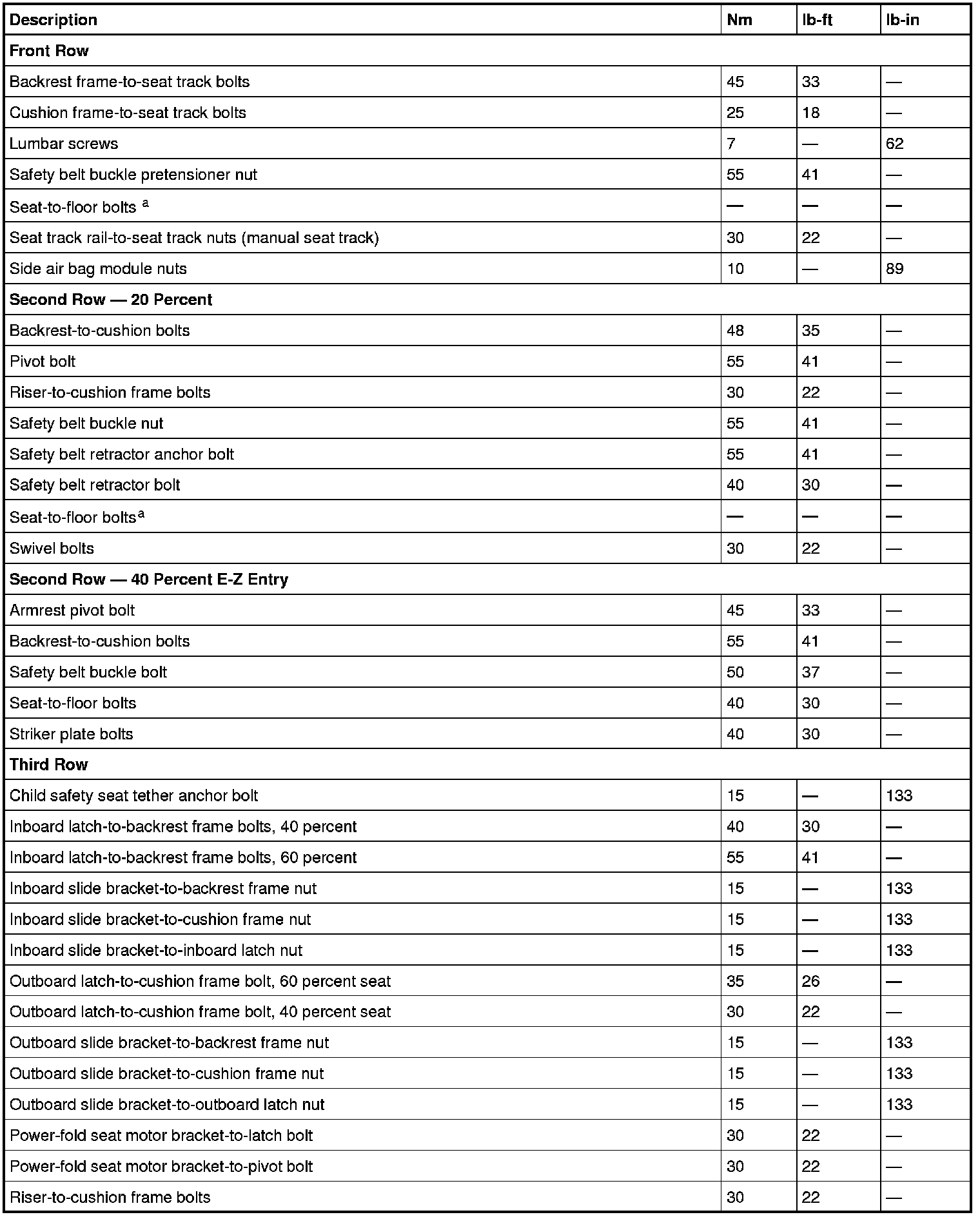 Torque Specifications