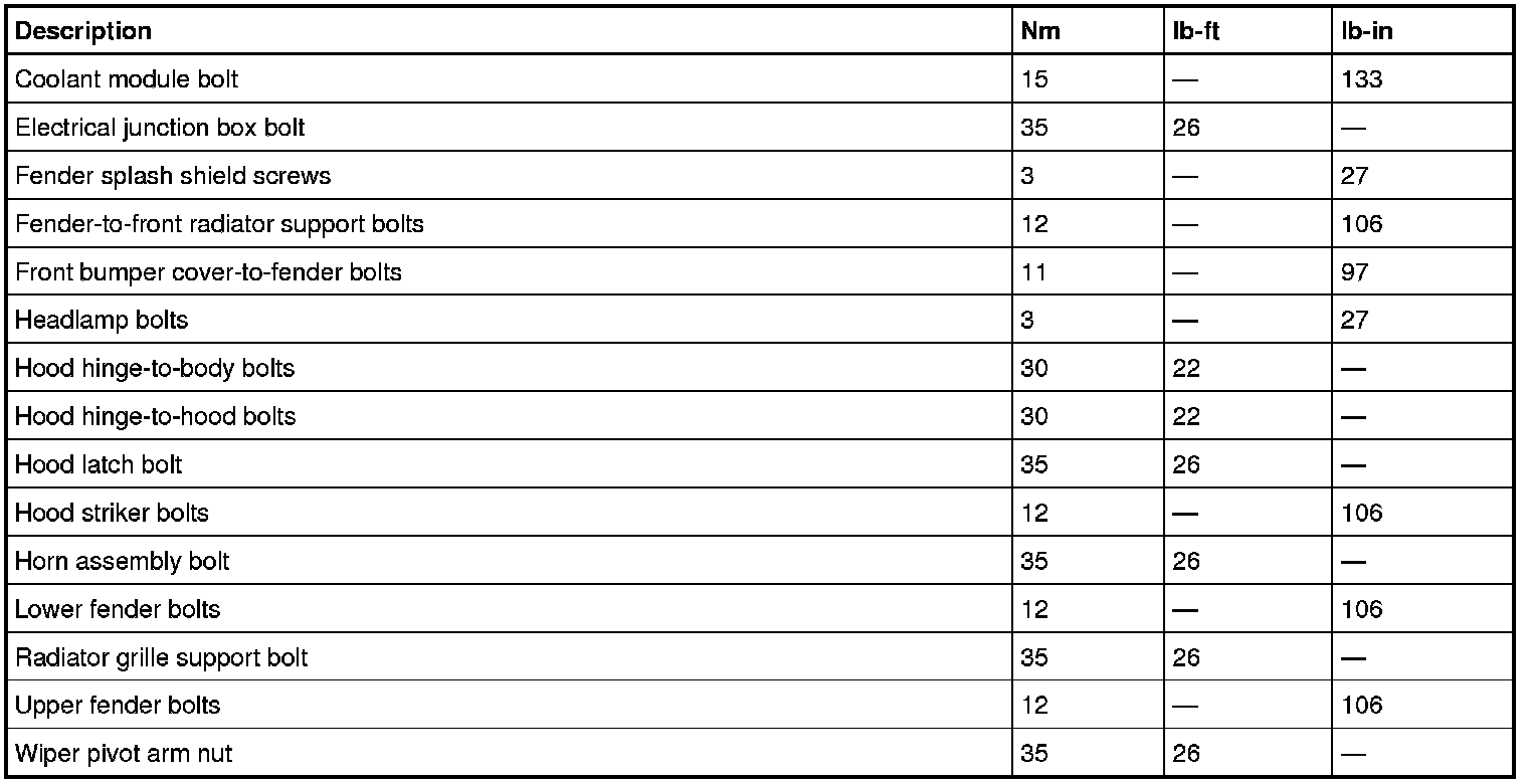 Torque Specifications