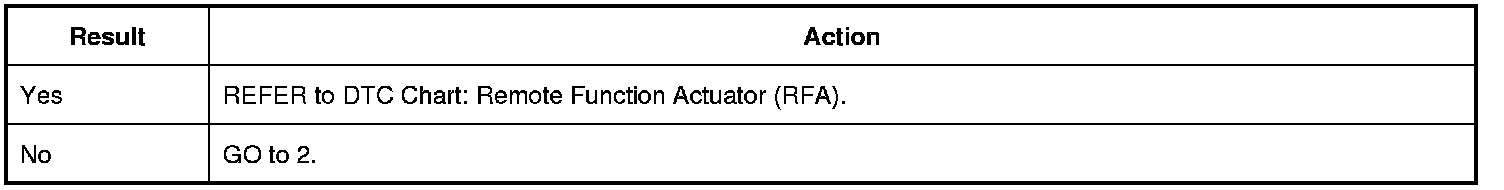 1. Review the DTCs (Diagnostic Trouble Codes) from the RFA (Remote Function Actuator) module self-test.