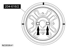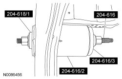 NOTE: When installing the RDU (Rear Drive Unit) bushing, RDU (Rear Drive Unit)204-616 /2 will fall away as the RDU (Rear Drive Unit) bushing is installed into the subframe. The RDU (Rear Drive Unit)204-616 does not control the depth of the bushing. The RDU (Rear Drive Unit) bushing is fully seated when the RDU (Rear Drive Unit)204-616 /3 and RDU (Rear Drive Unit)204-616 /1 fall away from the subframe, do not continue to tighten the RDU (Rear Drive Unit)204-616.