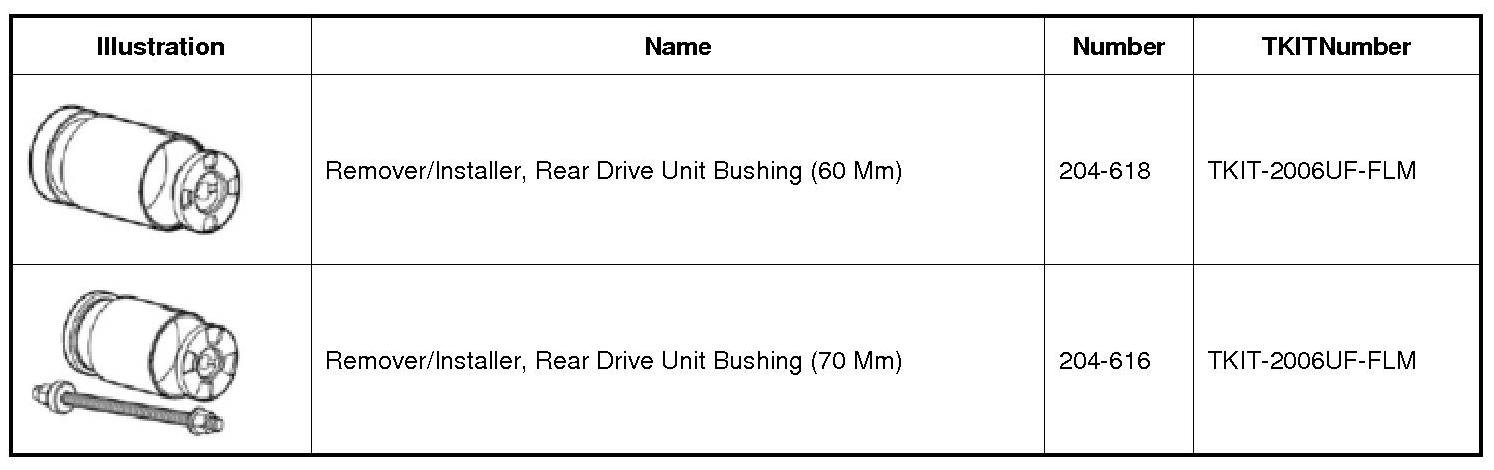 2. NOTE: The RDU (Rear Drive Unit)204-618 /1 must be used to remove the bushing to make sure that it passes through the receiver cup.