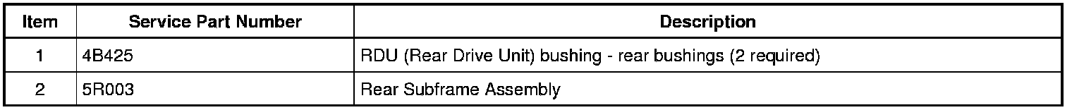1. NOTE: There are 2 RDU (Rear Drive Unit) rear bushings in the rear subframe. This procedure shows how to install one bushing. The procedure for the remaining RDU (Rear Drive Unit) bushing is identical.