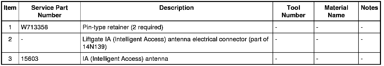 3. Remove the 2 pin-type retainers and the liftgate IA (Intelligent Access) antenna.