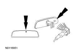 2. Use a bright lamp to illuminate the forward facing sensor. The mirror should adjust to a high reflectance mode (mirror will be clear).