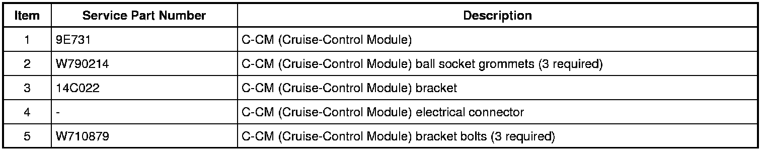 4. Inspect the C-CM (Cruise-Control Module) grommets for any damage and install new grommets as necessary.