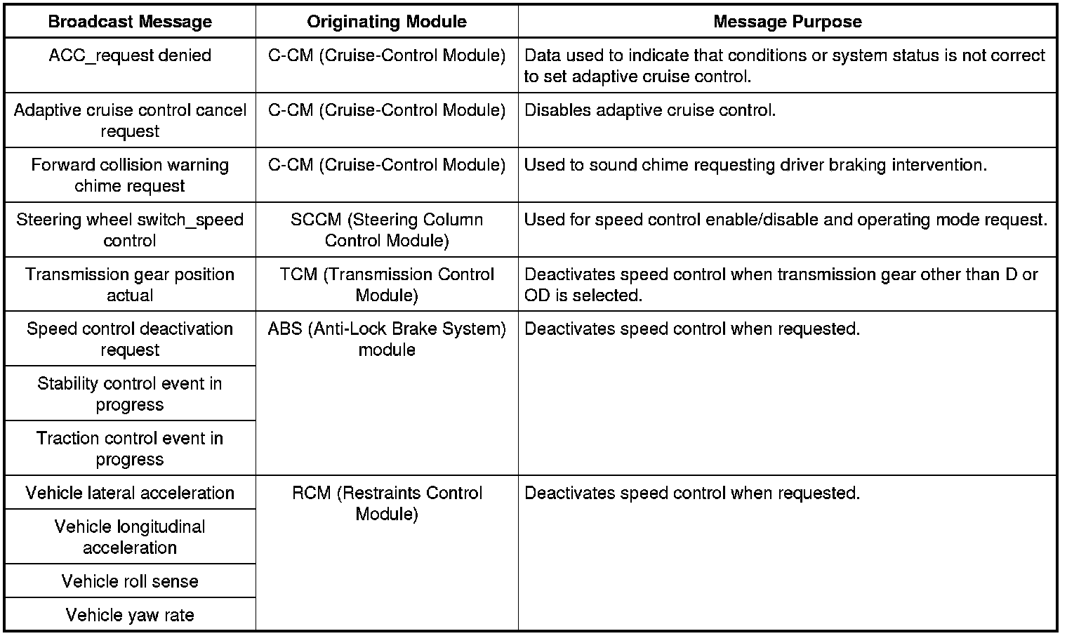Network Input Messages - C-CM (Cruise-Control Module)