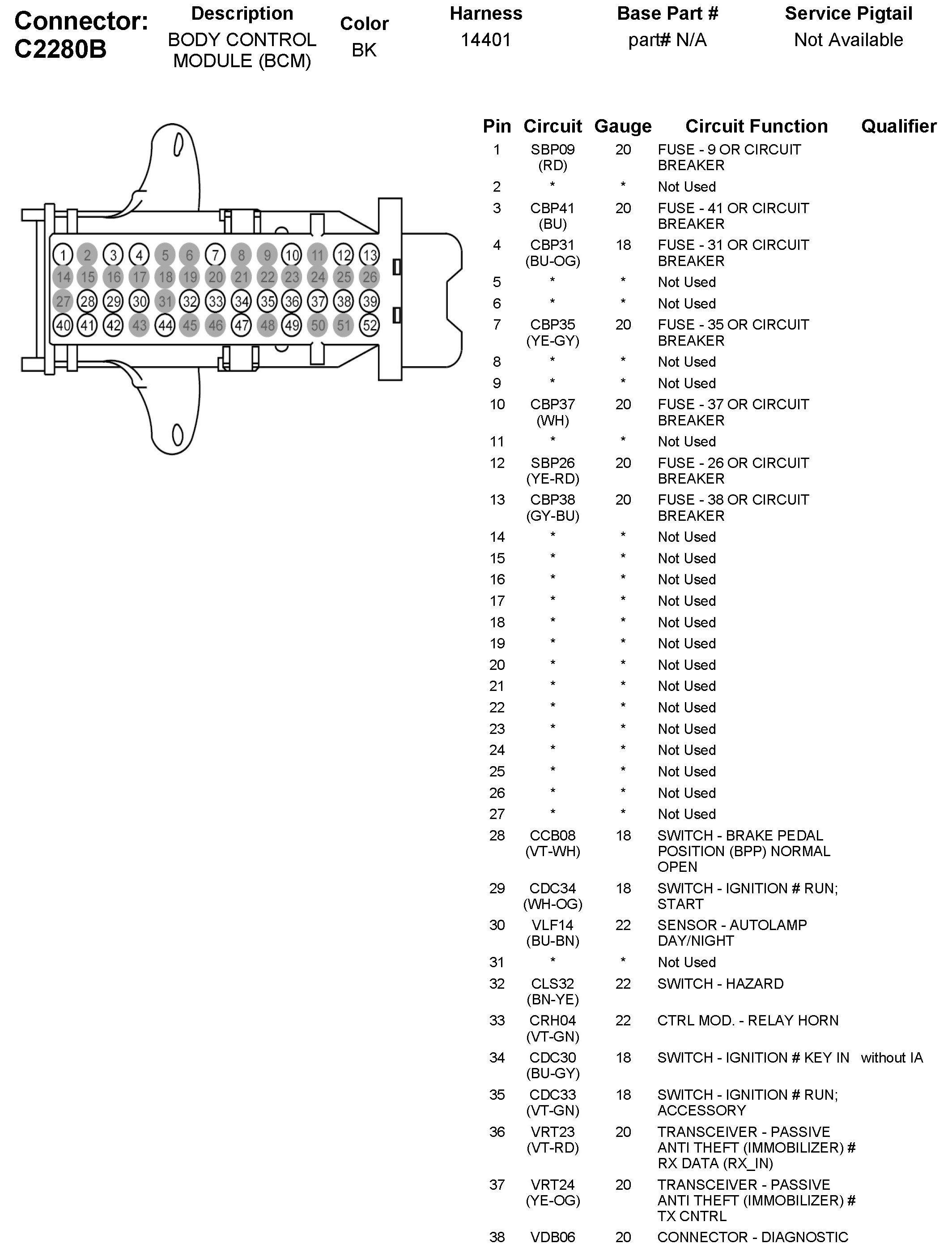 C2280B Body Control Module (BCM)