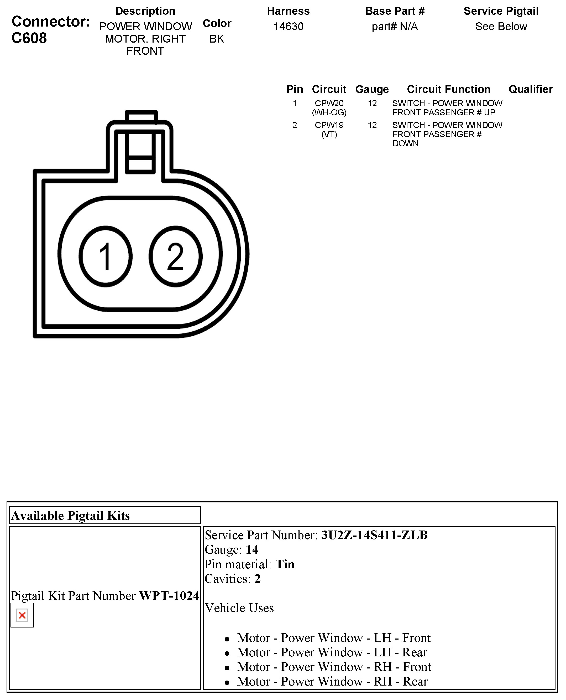 C608 Power Window Motor, Right Front