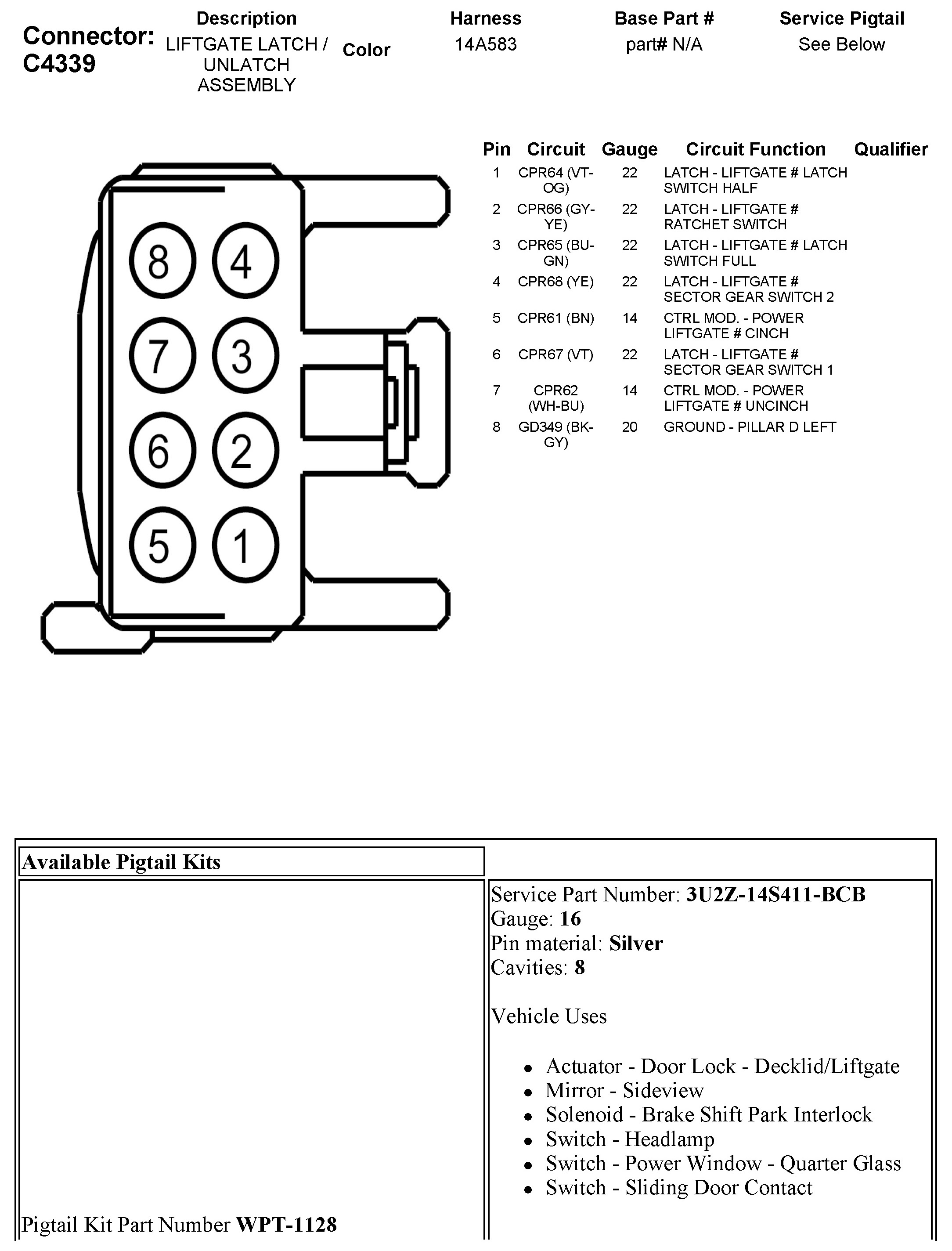C4339 Liftgate Latch / Unlatch Assembly