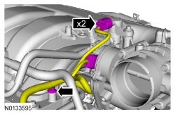 5. Detach the 2 coolant tube retainers from the upper intake manifold.