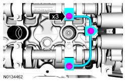 40. Install the RH (Right Hand) valve train oil tube and the 3 bolts and tighten in 2 stages: