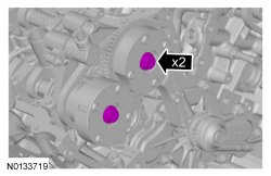 23. NOTE: The 2 VCT (Variable Camshaft Timing) oil control solenoids are removed for clarity.
