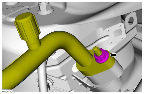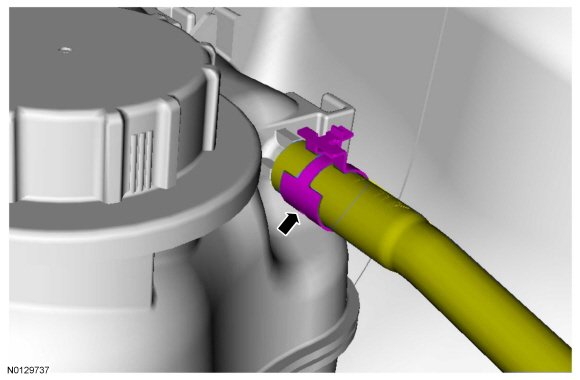 16. If equipped, connect the degas bottle coolant hose to the engine coolant tube.