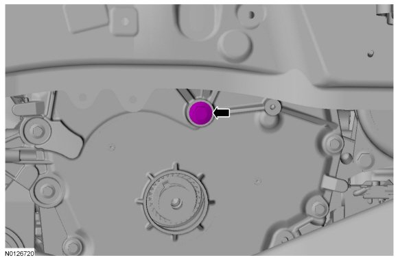 2. NOTICE: Place clean, lint-free shop towels over exposed engine cavities. Carefully remove the towels so foreign material is not dropped into the engine. Any foreign material (including any material created while cleaning gasket surfaces) that enters the oil passages or the oil pan, may cause engine failure.