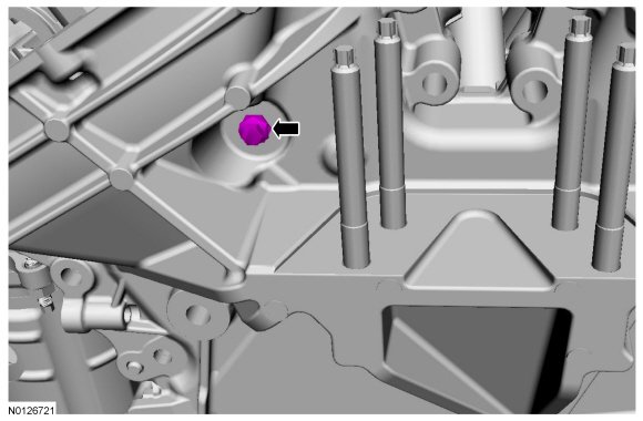 NOTICE: Place clean, lint-free shop towels over exposed engine cavities. Carefully remove the towels so foreign material is not dropped into the engine. Any foreign material (including any material created while cleaning gasket surfaces) that enters the oil passages or the oil pan, may cause engine failure.