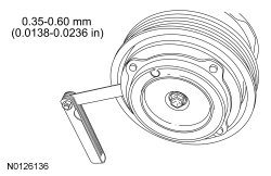 1. Check the A/C (Air Conditioning) clutch air gap at 3 equally spaced places between the clutch plate and the A/C (Air Conditioning) clutch pulley.