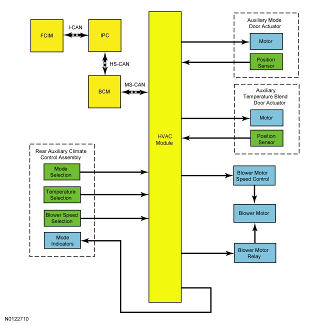 - The auxiliary blower motor recirculates the air inside the vehicle. Outside air is not available to the auxiliary climate control system.