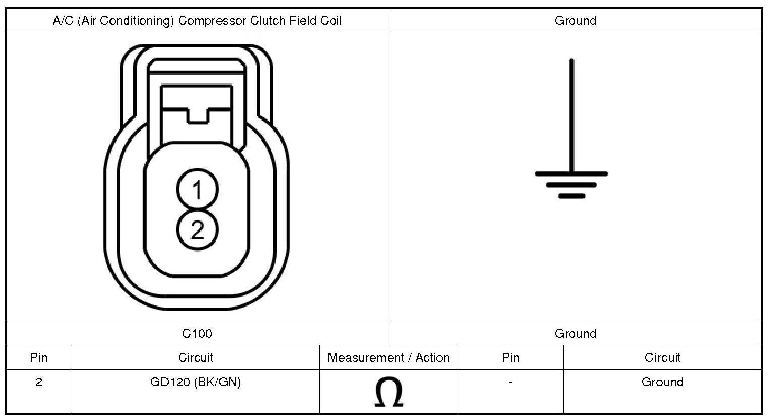 10. CHECK THE A/C (Air Conditioning) COMPRESSOR CLUTCH FIELD COIL GROUND CIRCUIT FOR AN OPEN