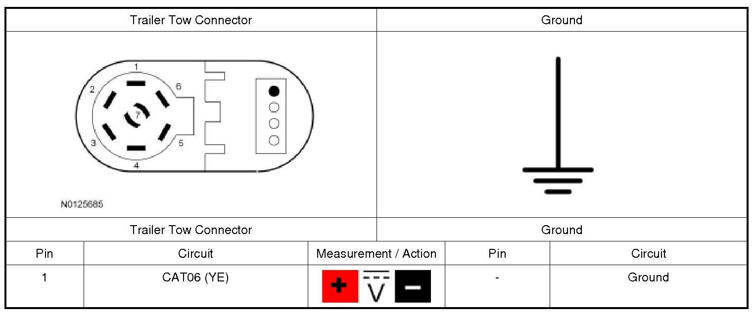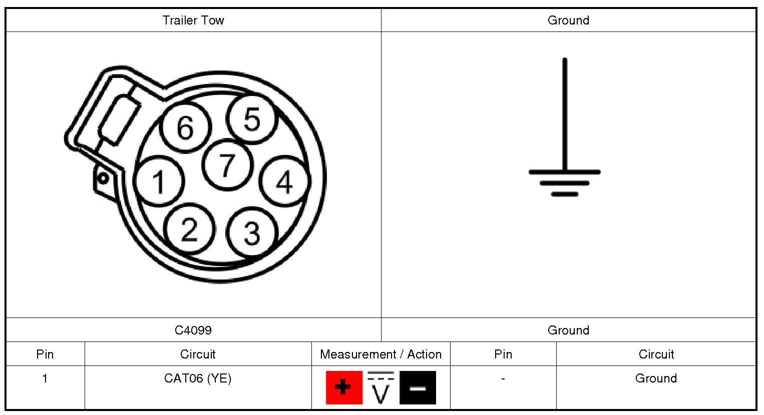 4. For the 7-pin connector, while applying the brake pedal, measure: