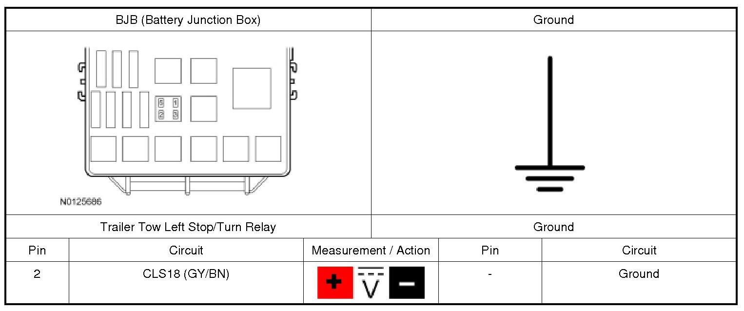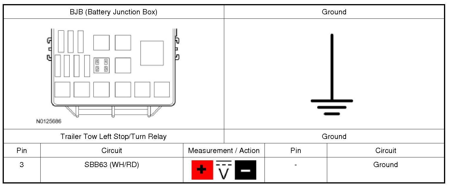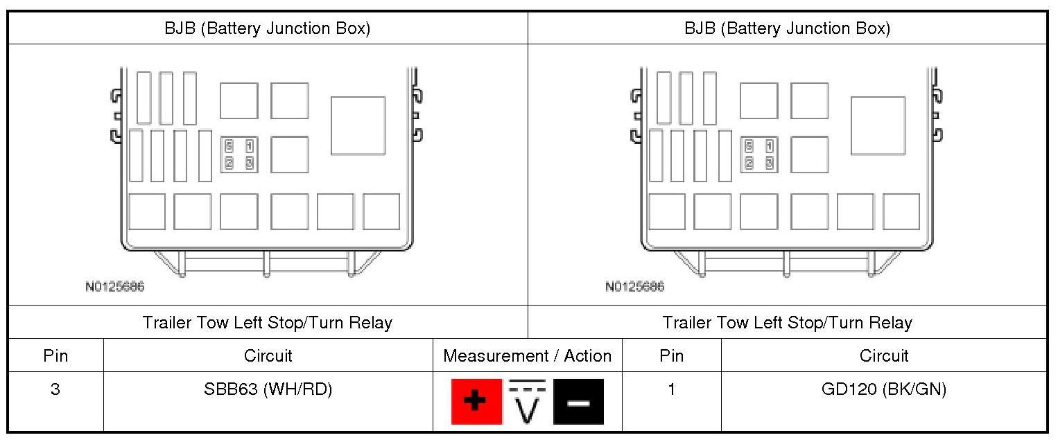 6. CHECK THE TRAILER TOW LEFT STOP/TURN LAMP RELAY BJB (Battery Junction Box) VOLTAGE SUPPLY CIRCUIT FOR AN OPEN