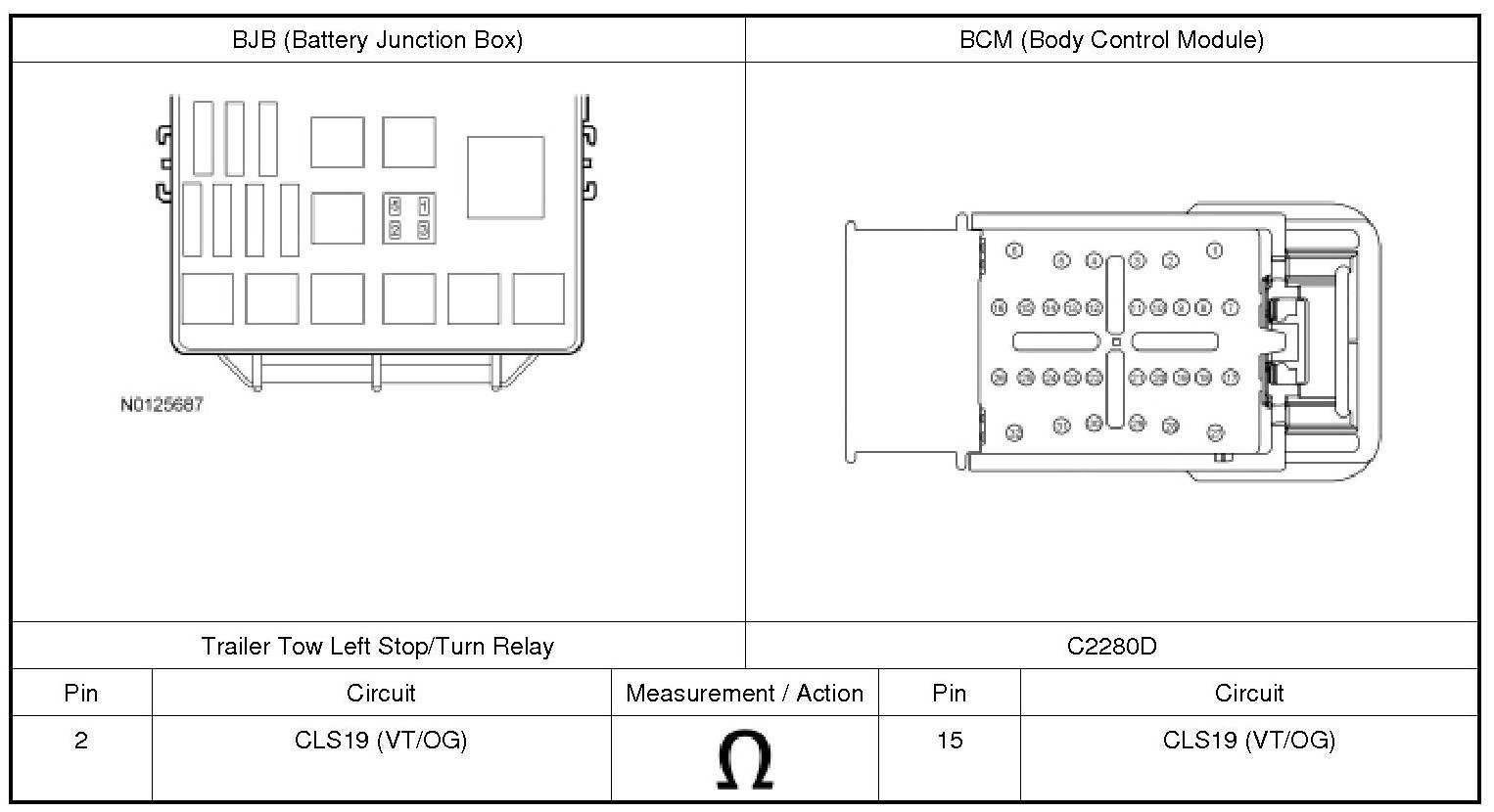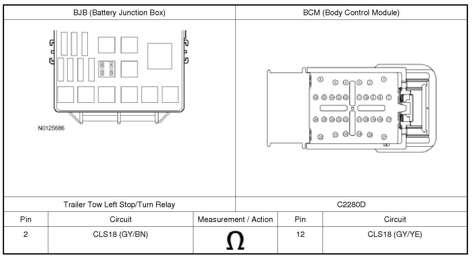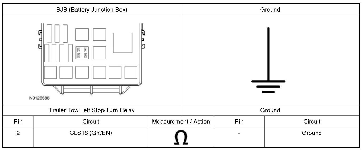 6. CHECK THE TRAILER TOW LEFT STOP/TURN LAMP RELAY BJB (Battery Junction Box) VOLTAGE SUPPLY CIRCUIT FOR AN OPEN