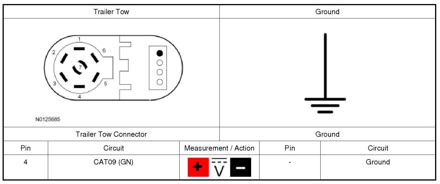 12. CHECK FOR VOLTAGE TO THE TRAILER TOW CONNECTOR (RIGHT STOP/TURN 7- PIN)