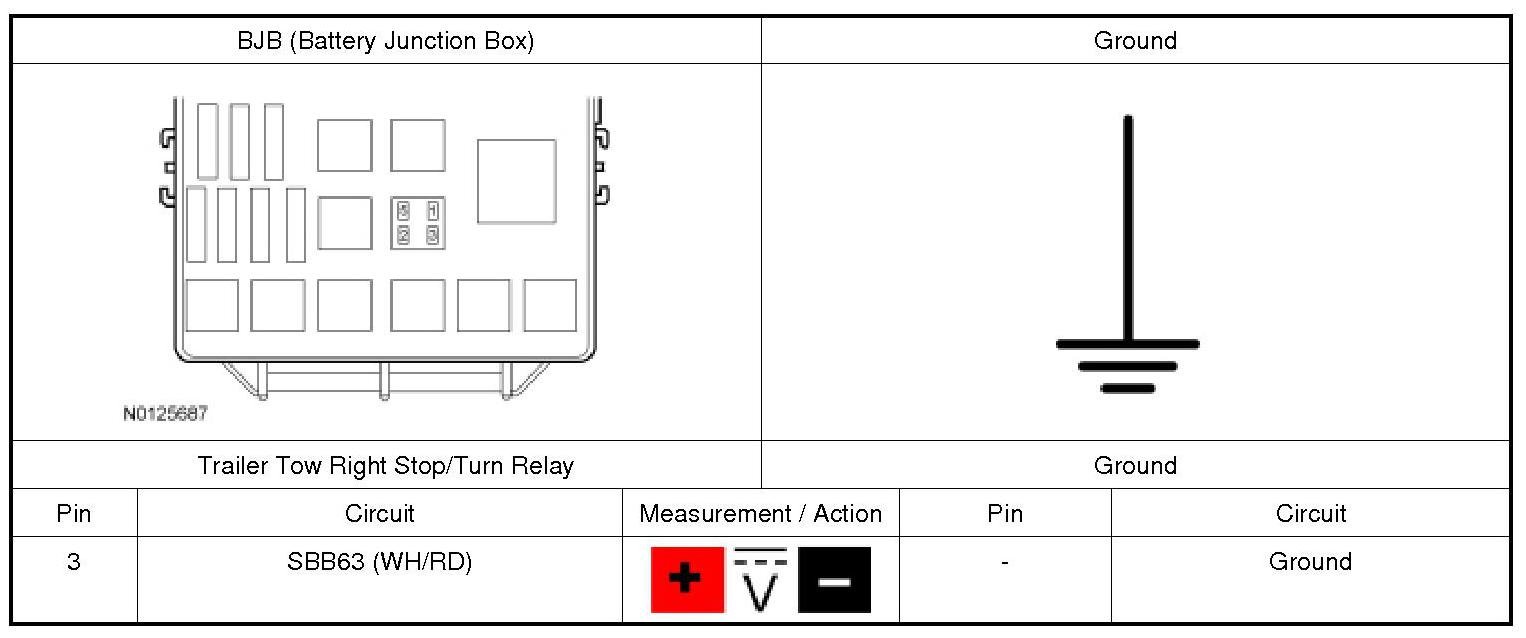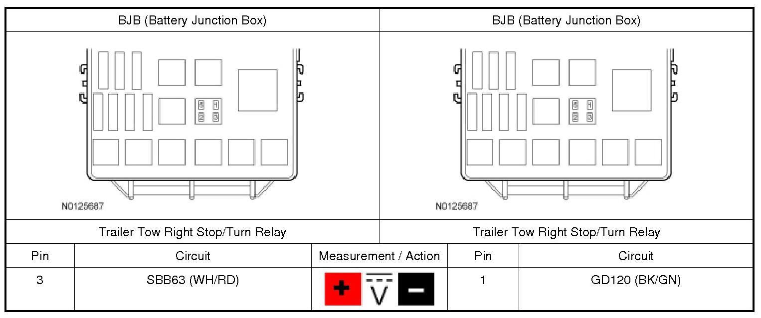 15. CHECK THE TRAILER TOW RIGHT STOP/TURN LAMP RELAY BJB (Battery Junction Box) VOLTAGE SUPPLY CIRCUIT FOR AN OPEN
