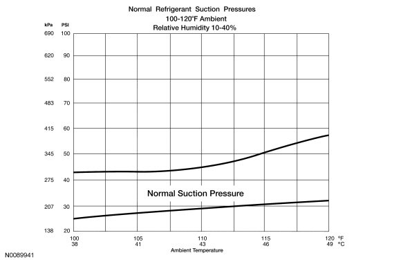 NOTE: The system performance can be evaluated and diagnosed by analysis of the compressor suction and discharge pressures. The following procedure is used to determine if the system is operating at normal pressures.