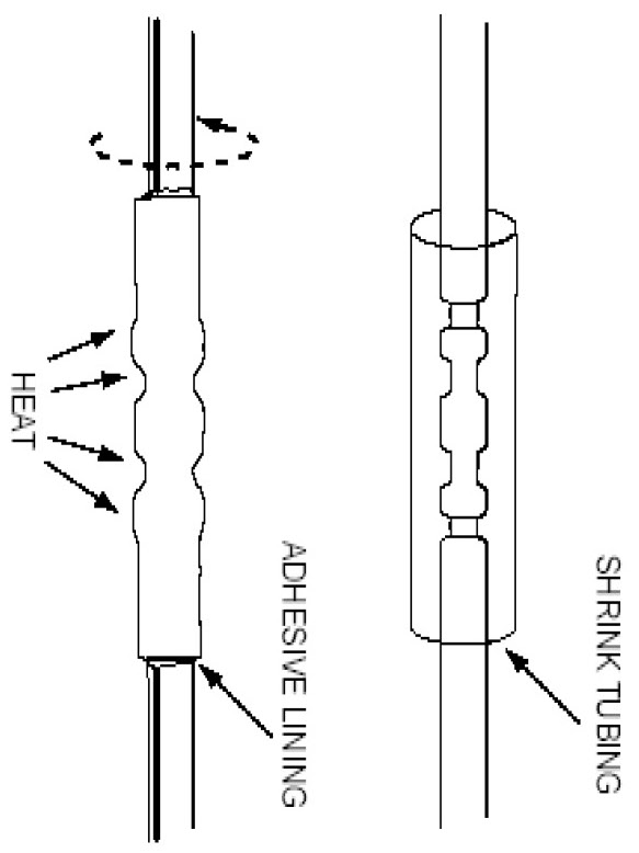 13. Use shielded heat gun to heat the repaired area until adhesive flows out of both ends of the heat shrink tubing.