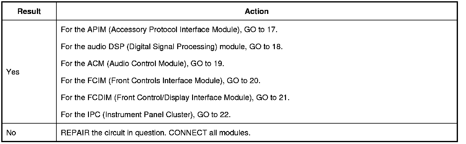 16. CHECK FOR RESTORED COMMUNICATION WITH THE APIM (Accessory Protocol Interface Module) DISCONNECTED