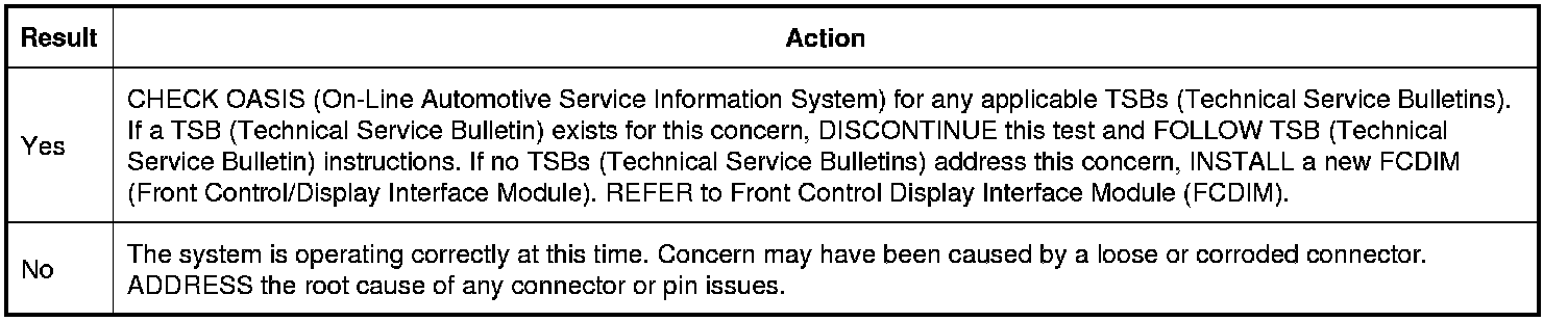 12. CHECK FOR RESTORED COMMUNICATION WITH THE FCIM (Front Controls Interface Module) AND THE FCDIM (Front Control/Display Interface Module) DISABLED