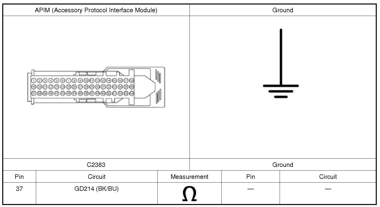 2. CHECK THE APIM (Accessory Protocol Interface Module) GROUND CIRCUITS FOR AN OPEN