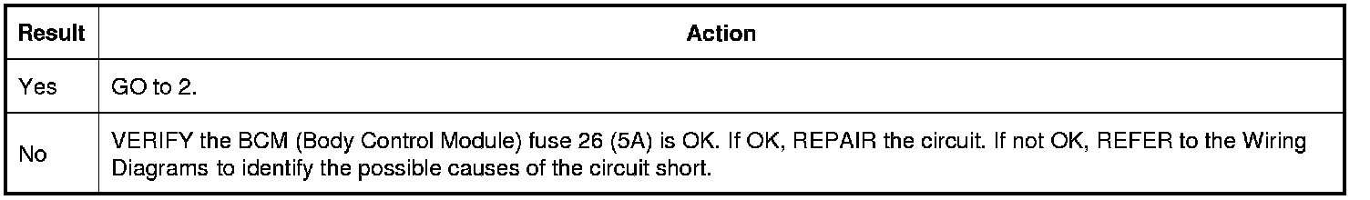 Verify BCM (Body Control Module) fuse 26 (5A) is OK.