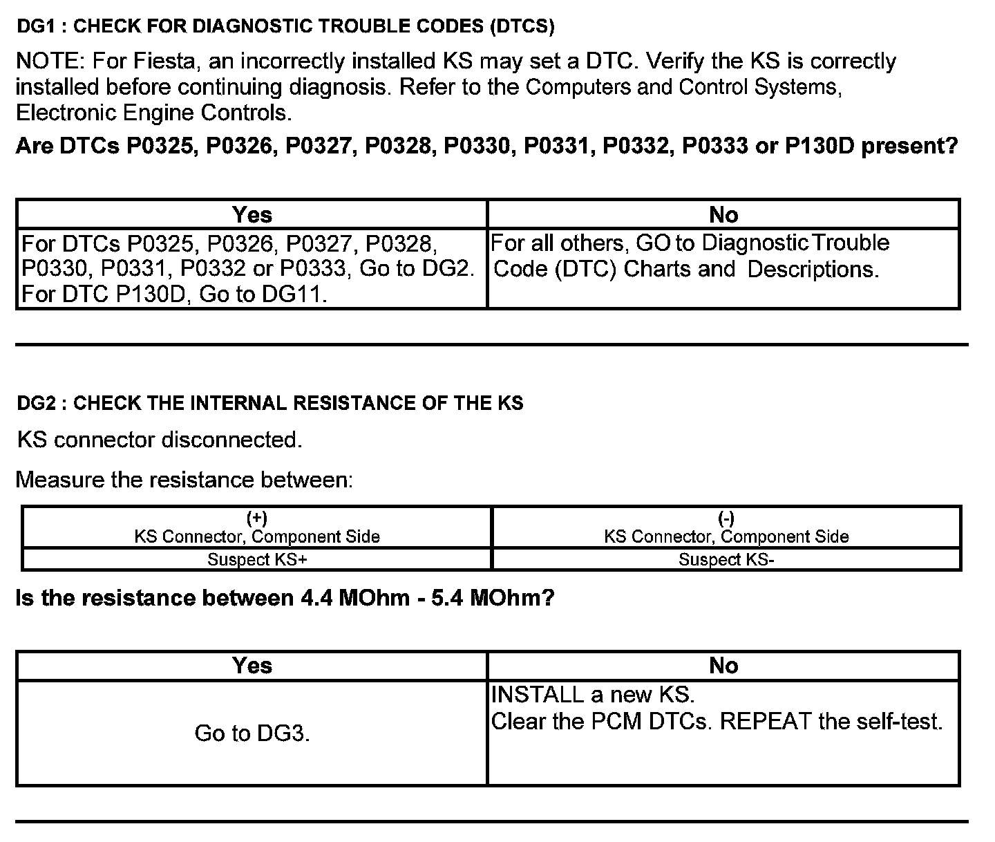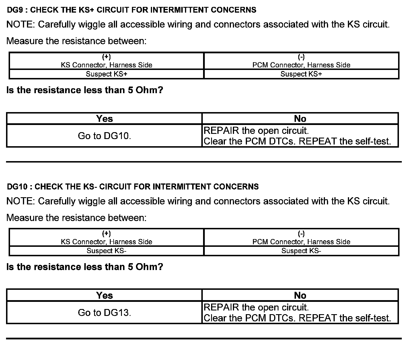 Test DG: Knock Sensor (KS)