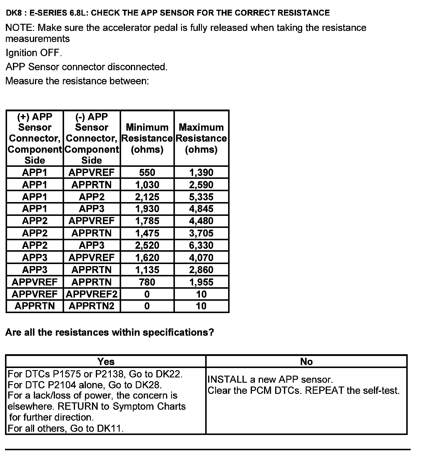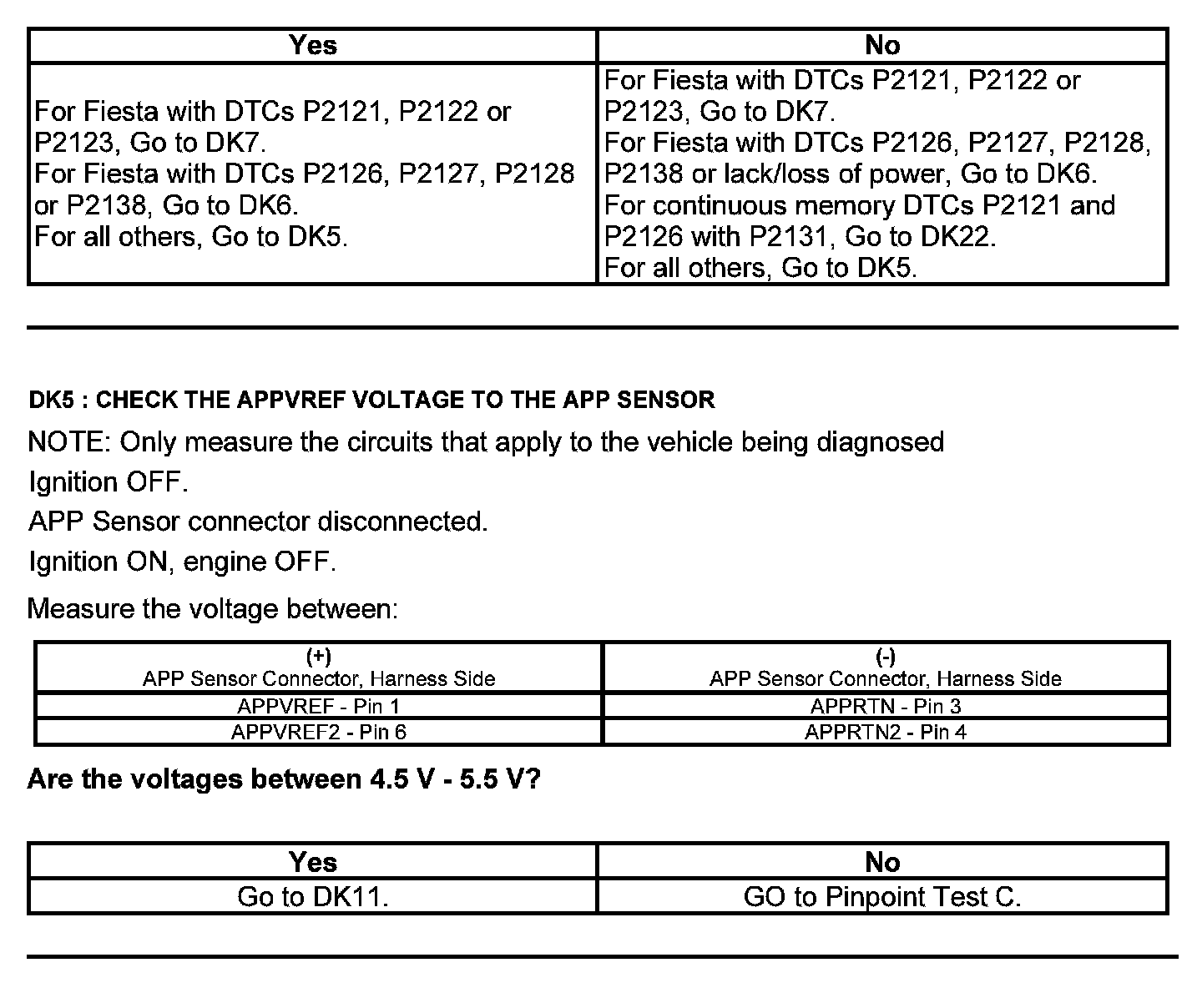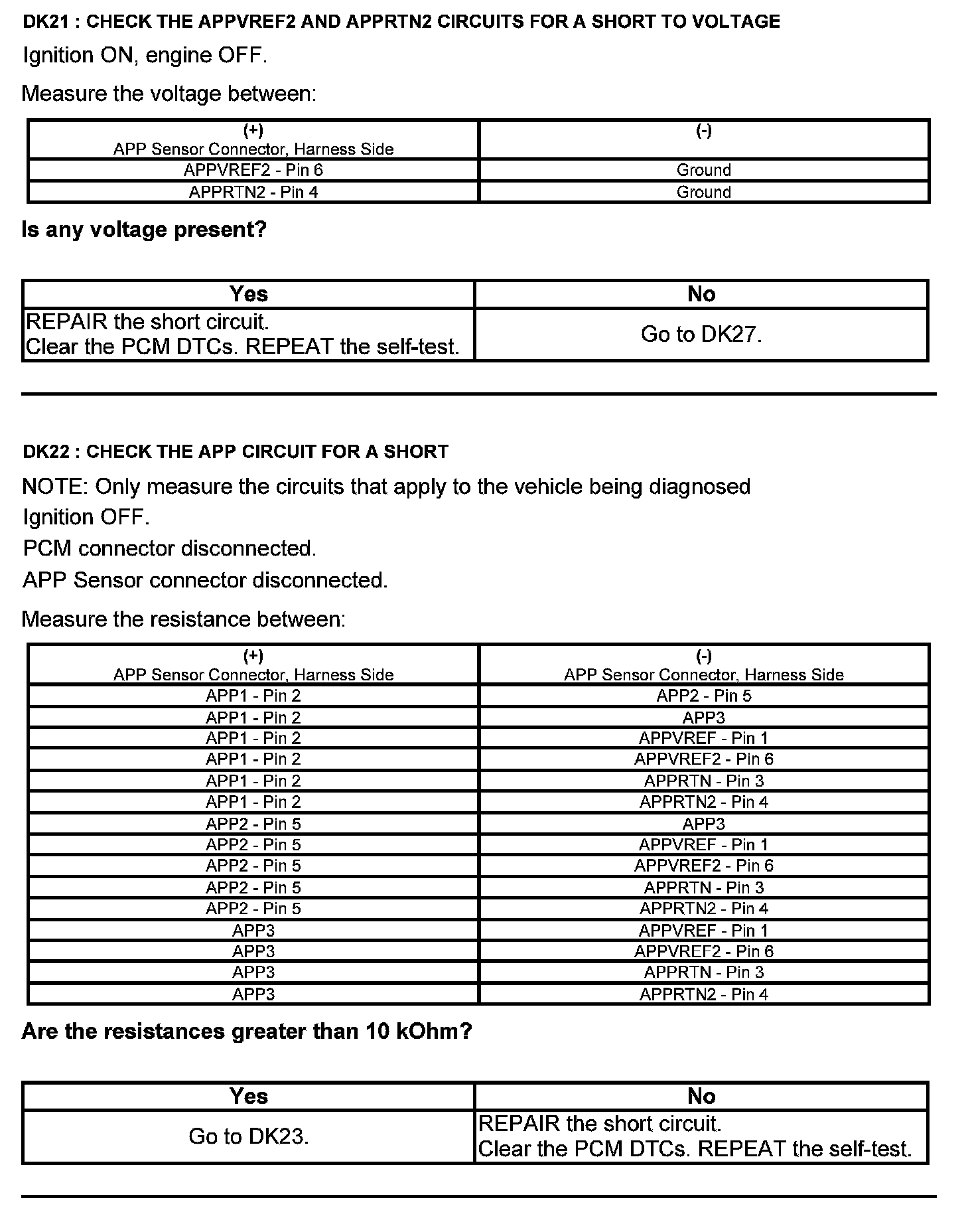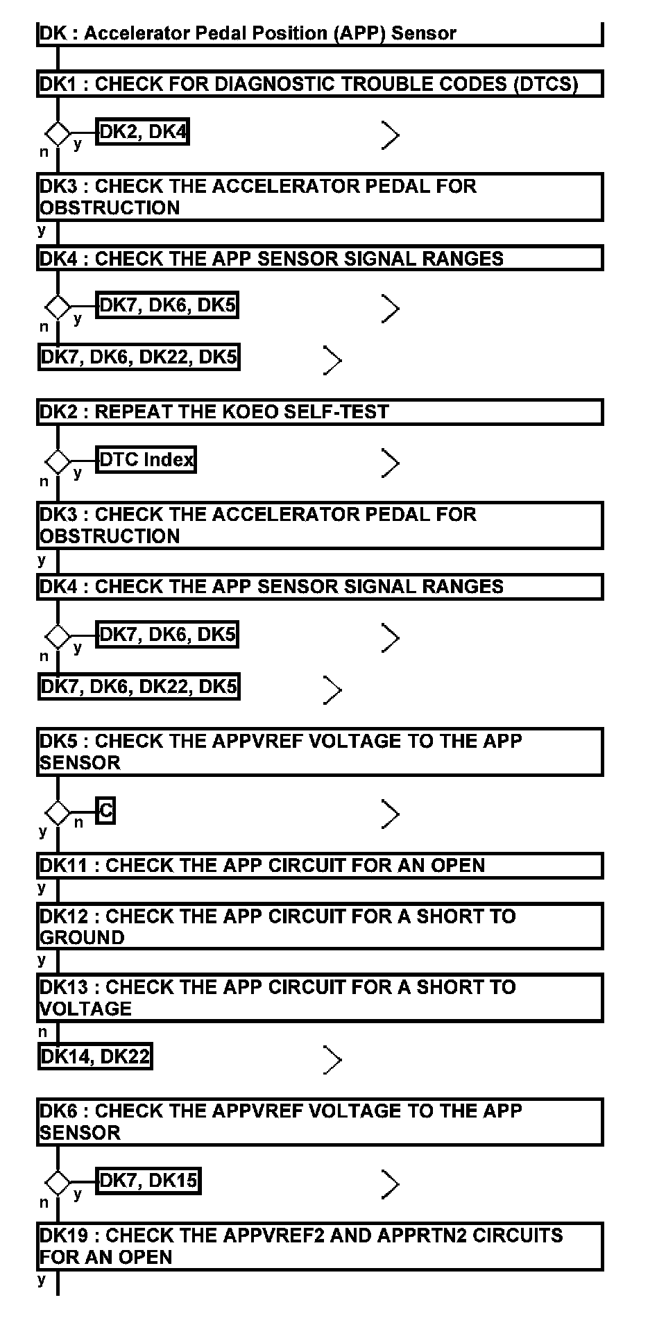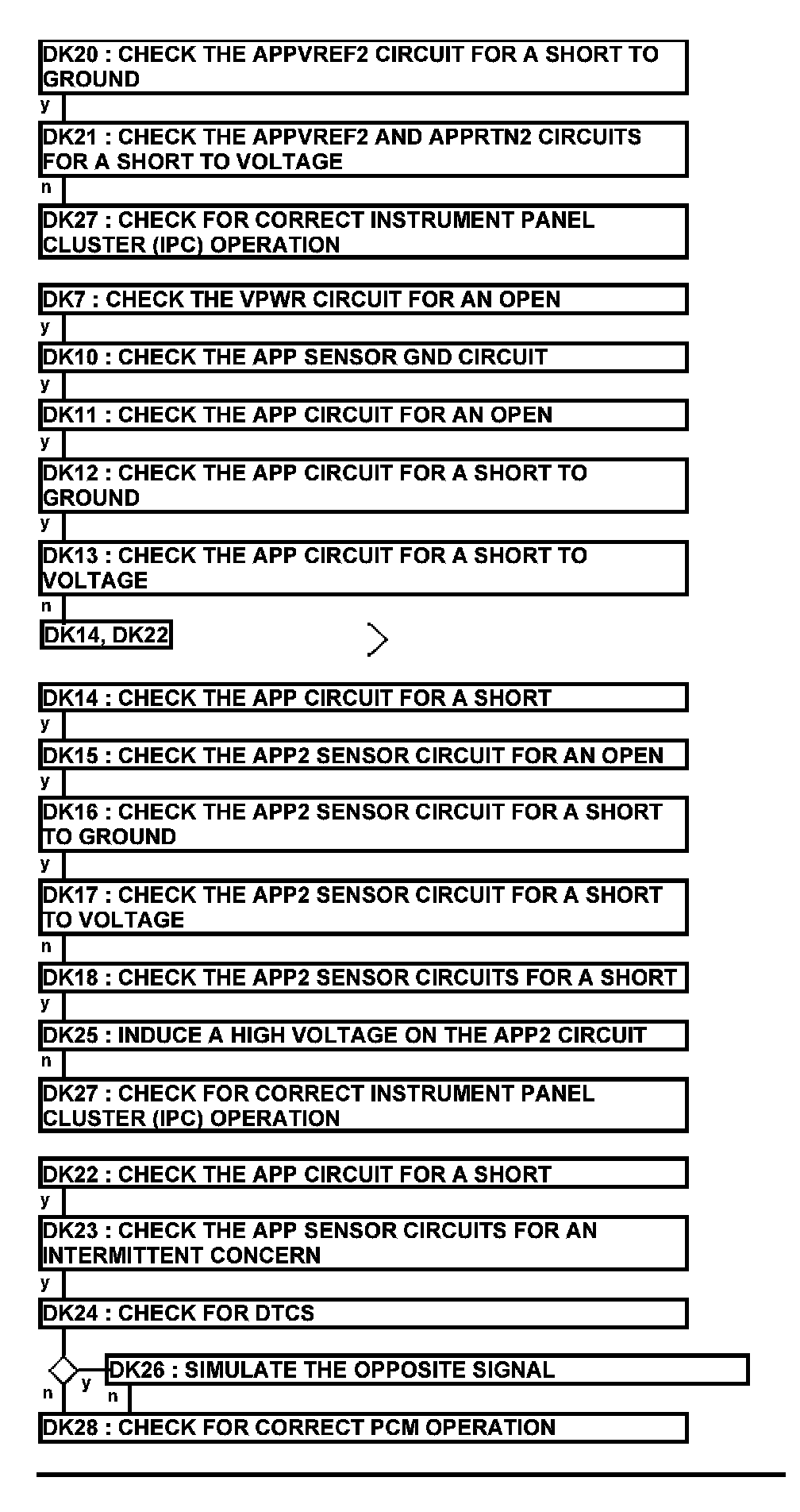 Home >> Ford >> 2012 >> Explorer AWD V6-3.5L >> Repair and Diagnosis >> Powertrain Management >> Computers and Control Systems >> Testing and Inspection >> Pinpoint Tests >> Test DK: Accelerator Pedal Position (APP) Sensor