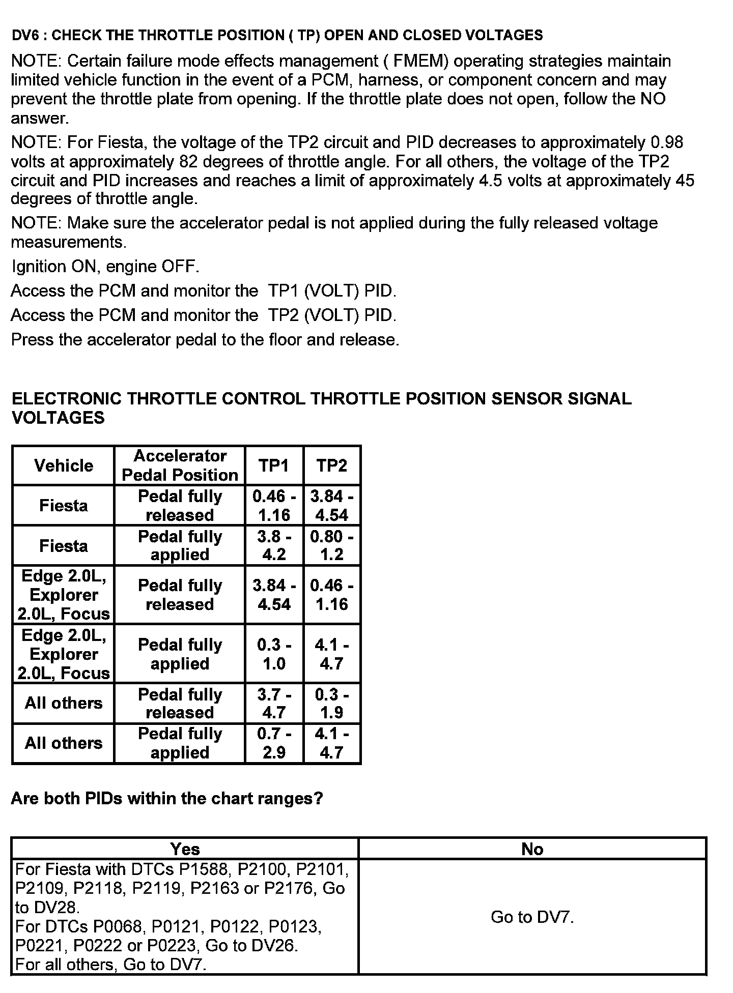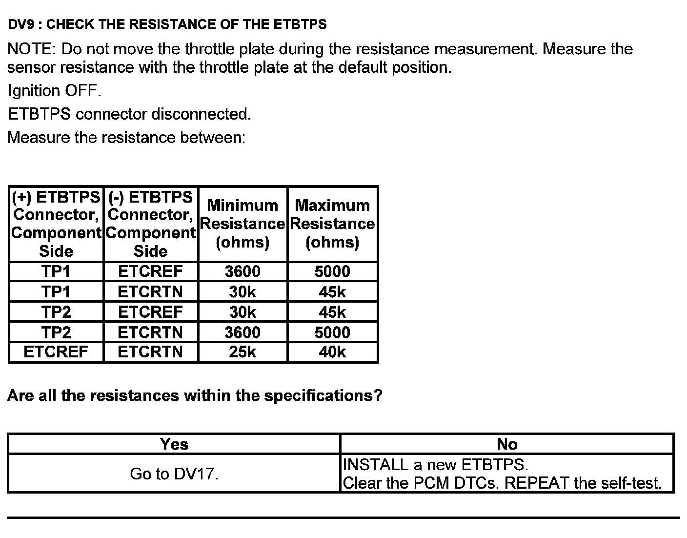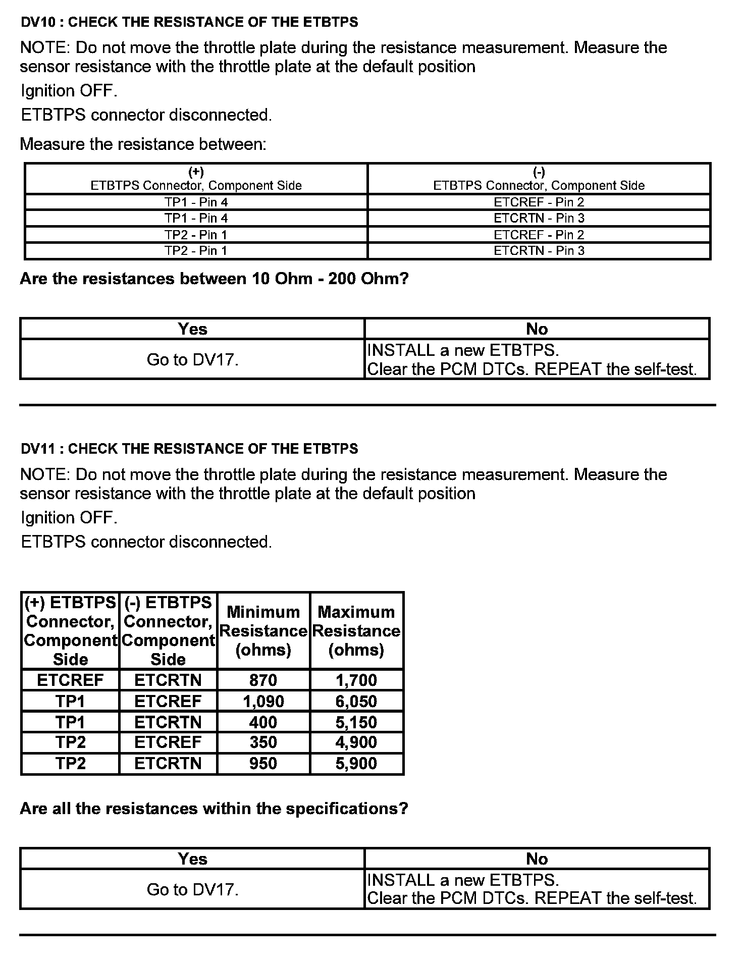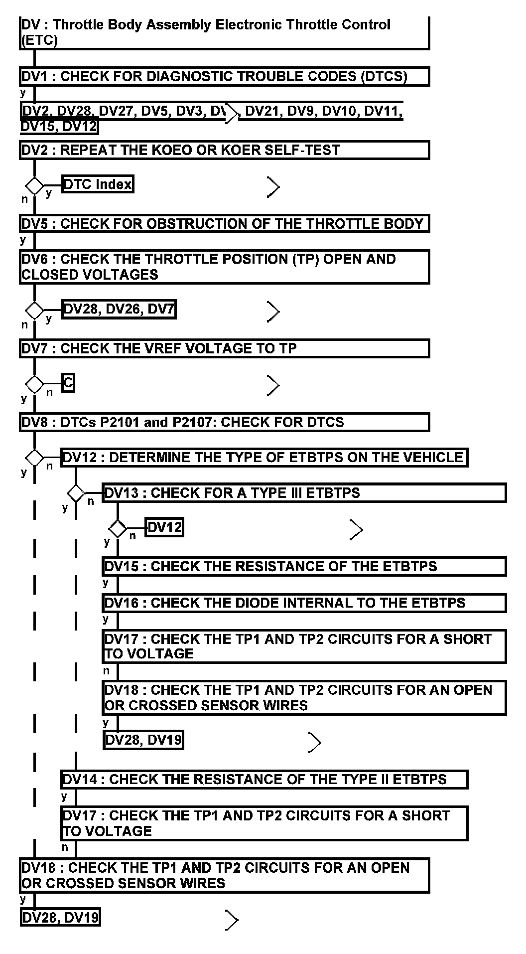 Home >> Ford >> 2012 >> Explorer AWD V6-3.5L >> Repair and Diagnosis >> Powertrain Management >> Computers and Control Systems >> Testing and Inspection >> Pinpoint Tests >> Test DV: Throttle Body Assembly Electronic Throttle Control (ETC)