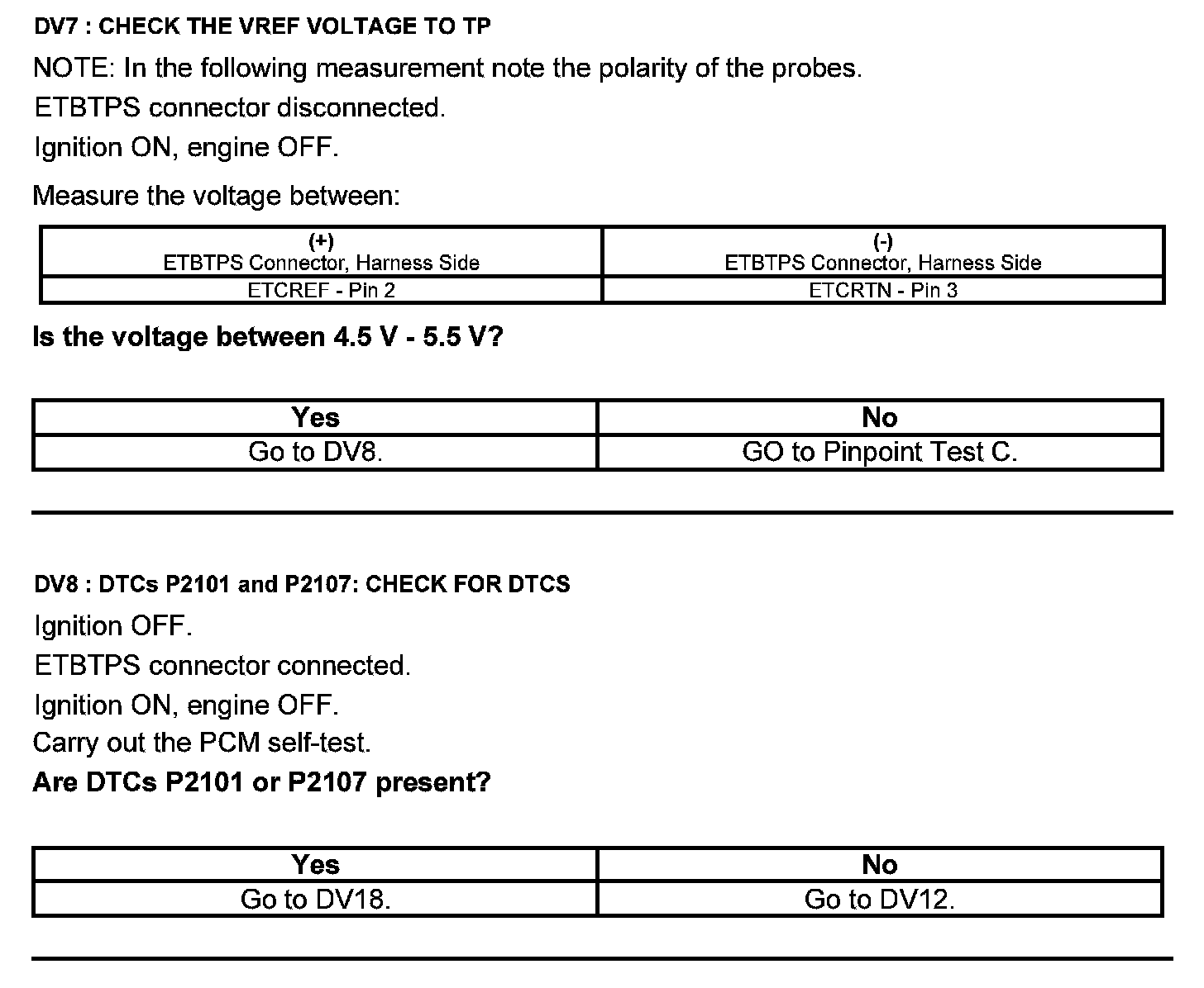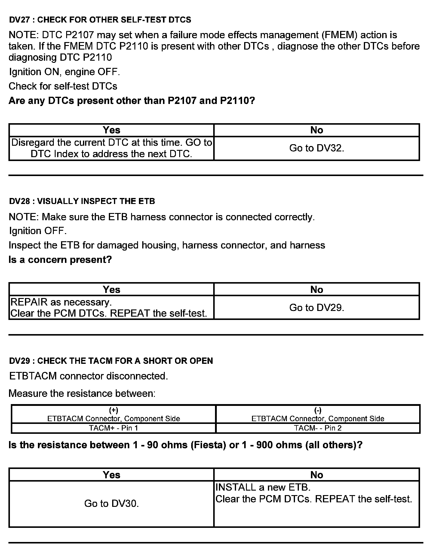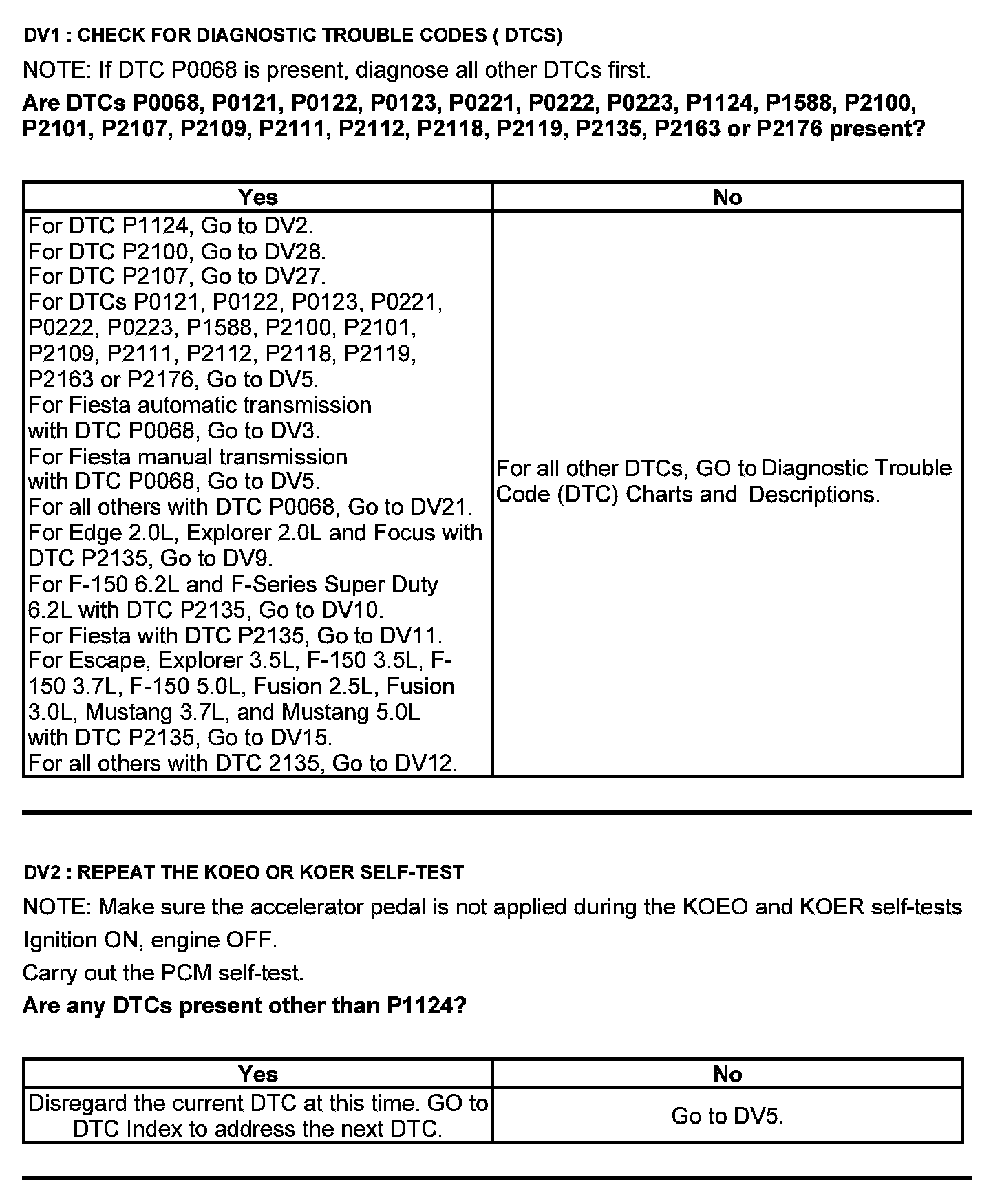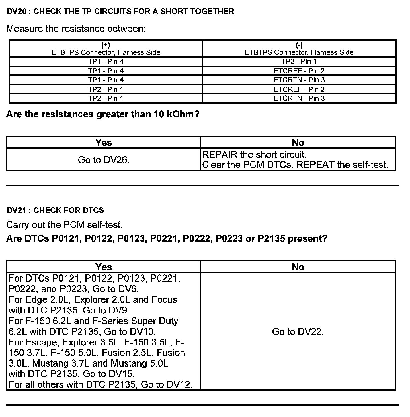 Home >> Ford >> 2012 >> Explorer AWD V6-3.5L >> Repair and Diagnosis >> Powertrain Management >> Computers and Control Systems >> Testing and Inspection >> Pinpoint Tests >> Test DV: Throttle Body Assembly Electronic Throttle Control (ETC)
